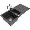 Mexen Andres évier en granit 1,5 bac avec égouttoir et robinet de cuisine Carla, beige - 6515-69-670700-69