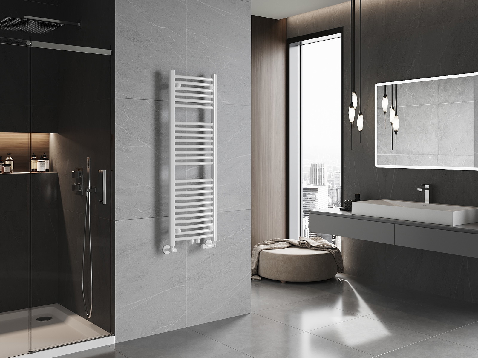 Mexen Ares est un radiateur de salle de bain élégant de dimensions 1200 x 400 mm, offrant une puissance de chauffage de 442 W, idéal pour les petites salles de bain. Fabriqué en acier de haute qualité et recouvert d'un revêtement durable résistant à la corrosion, il garantit la longévité d'utilisation. Le produit se distingue par la possibilité d'installation d'une résistance et des options de raccordement flexibles : bas 35 cm ou central 5 cm. Le set comprend des suspensions, un kit de montage et des bouchons obturateurs, ce qui facilite l'installation et assure une fonctionnalité complète.