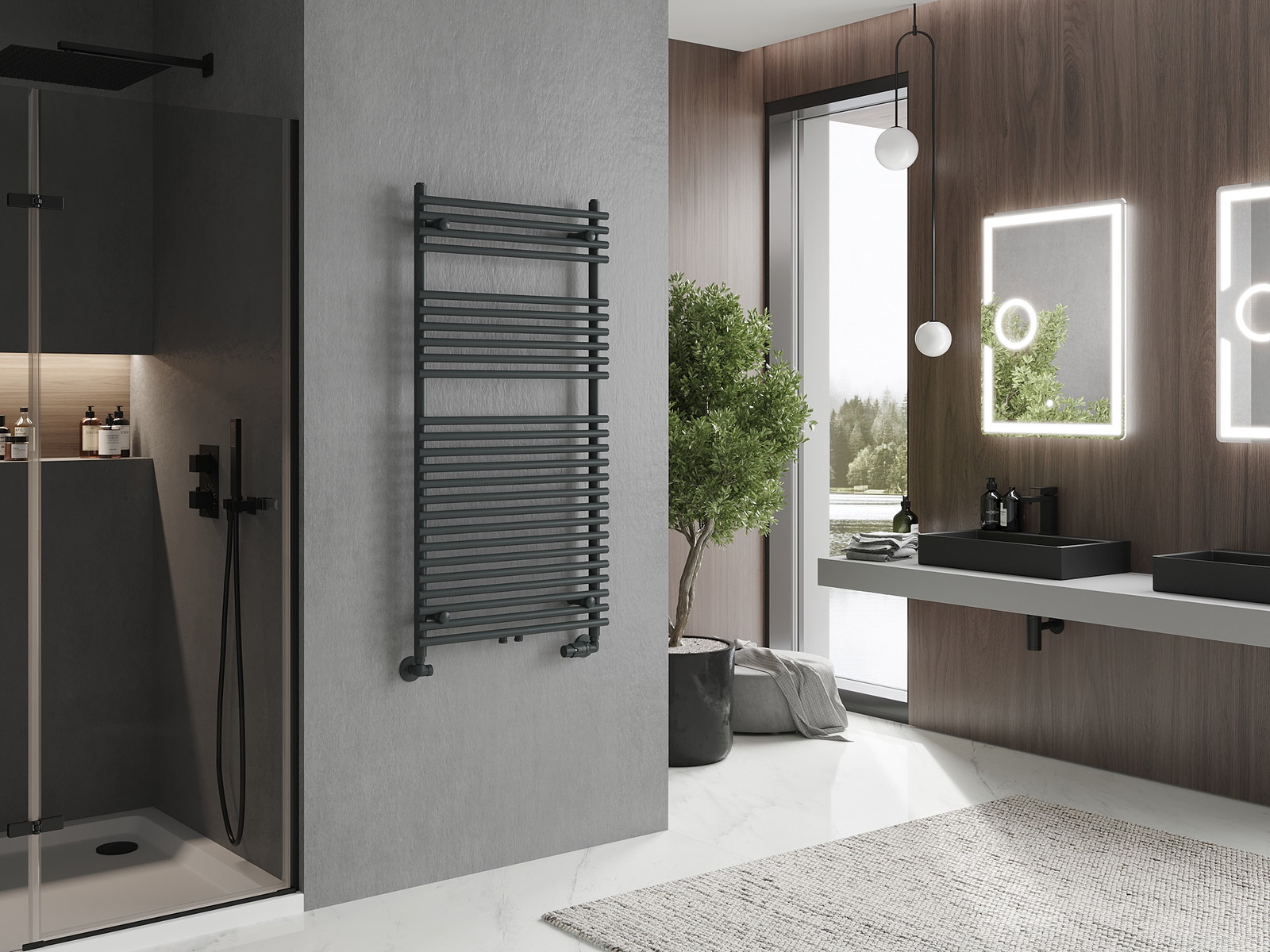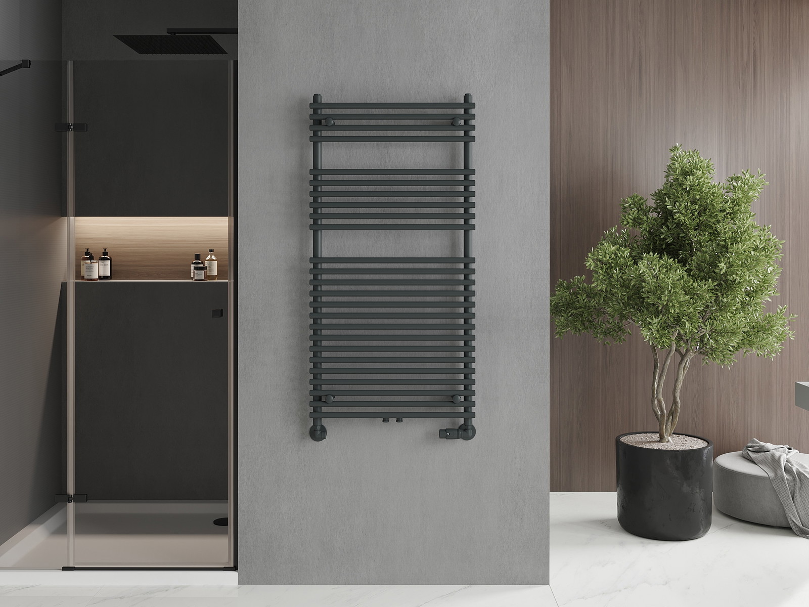 Mexen Sol est un radiateur de salle de bain élégant de dimensions 1200 x 600 mm avec une puissance de 658 W, idéal pour les intérieurs modernes. Sa couleur anthracite RAL 7016 apporte charme et sa construction en acier garantit durabilité et longévité. Grâce à la possibilité de montage de résistance électrique et à l'espacement inférieur et central des connexions, il assure une installation polyvalente. Le revêtement de haute qualité résistant à la corrosion, avec une réaction au feu A1, assure sécurité et fiabilité. Le produit est livré avec un kit de montage complet.