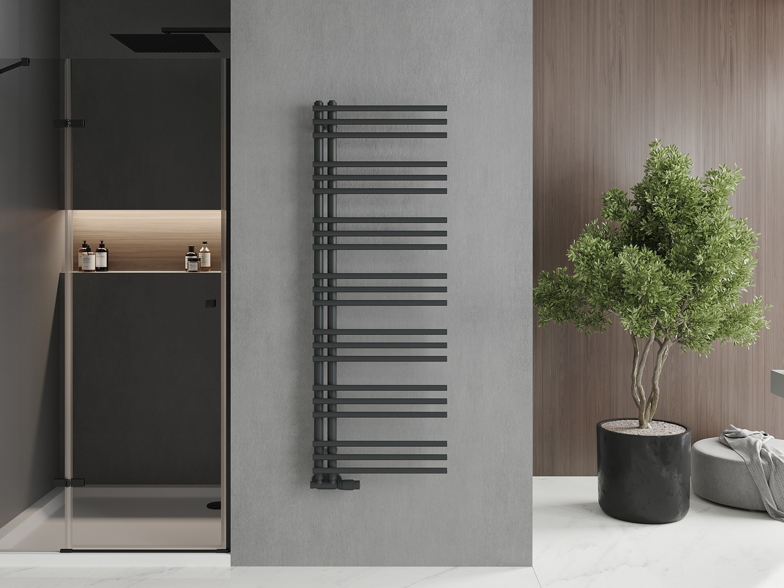 Mexen Neptun est un radiateur de salle de bains décoratif aux dimensions de 1400 x 500 mm, offrant un chauffage efficace grâce à une puissance de 532 W. Fabriqué en acier de haute qualité et recouvert d'un revêtement durable de couleur anthracite RAL 7016, il est résistant à la corrosion. Le radiateur pèse 9,79 kg et est réactif au feu en classe A1. Il peut fonctionner à une température maximale de 95 °C et une pression de 0,6 Mpa. Il dispose de 4 raccordements ½″ et permet l'installation d'une résistance. Comprend des supports, un kit de montage, des bouchons et un purgeur.