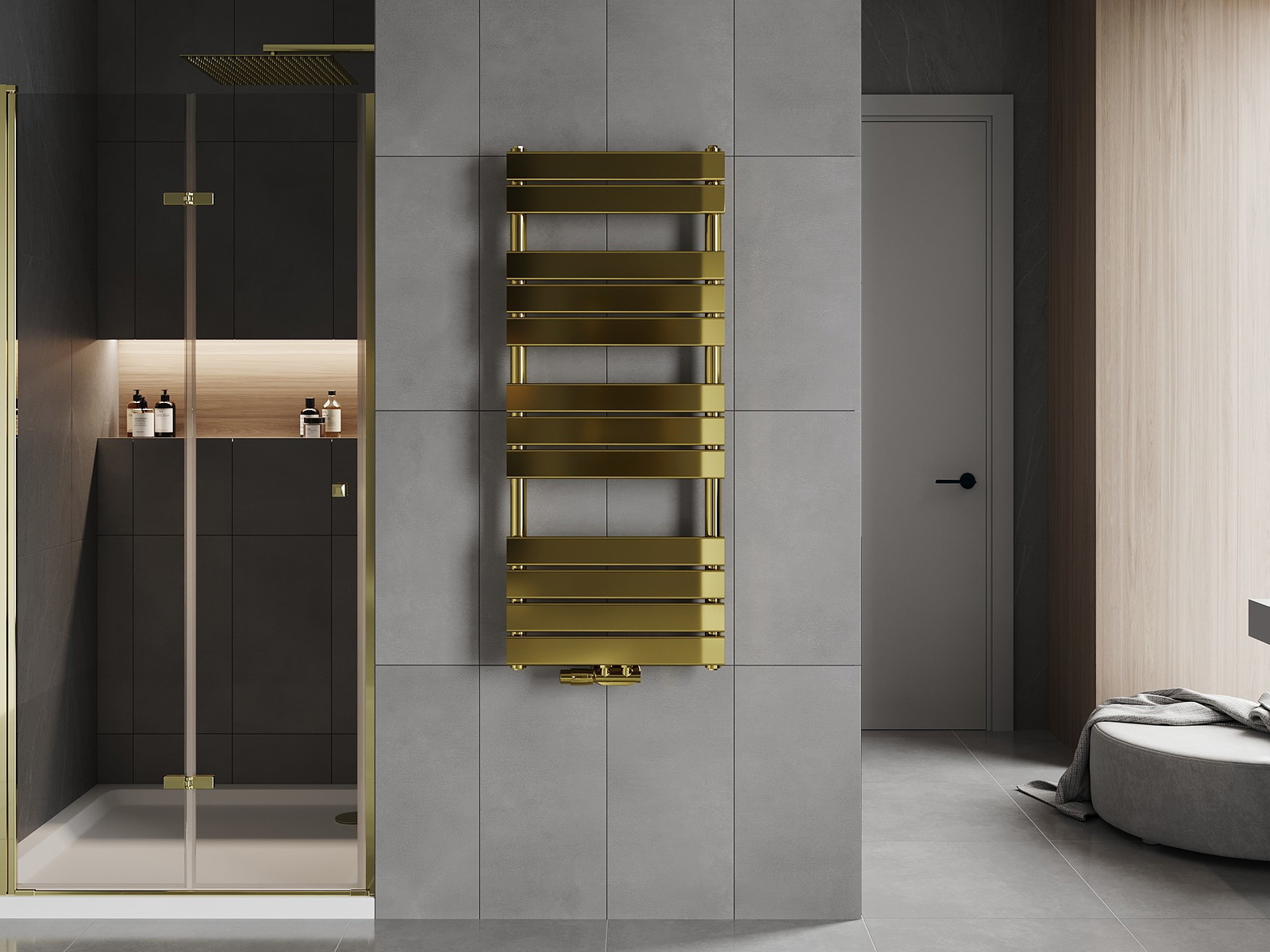 Mexen Ceres est un radiateur de salle de bains élégant qui allie style et fonctionnalité. Avec des dimensions de 1200 x 500 mm et une puissance calorifique de 482 W, il s'adapte parfaitement à toute salle de bains. Fabriqué en acier durable et recouvert d'un revêtement doré hautement résistant à la corrosion, il offre une longue durée de vie. La possibilité d'installer une résistance et les différentes options de raccordement (inférieur 45 cm, central 5 cm) sont des atouts supplémentaires. Le radiateur est résistant aux hautes températures (max. 95°C) et à la pression de service jusqu'à 0,3 MPa. Le kit de montage complet est inclus.