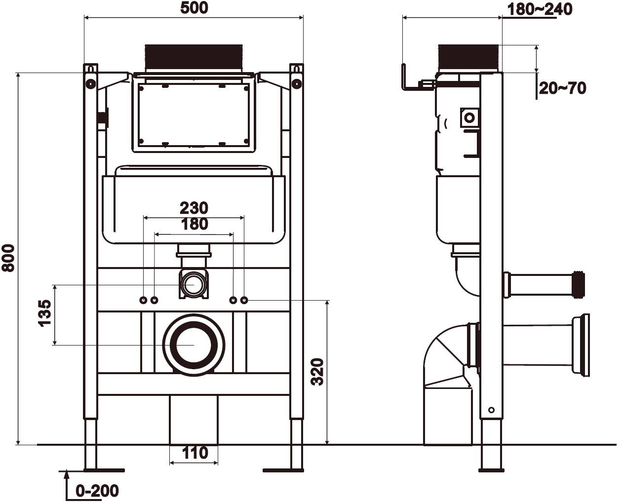 La possibilité de régler la hauteur du châssis permet un meilleur ajustement aux différentes conditions techniques dans la salle de bain. Une plage de réglage flexible assure le confort de l'installation et l'obtention de la hauteur optimale du châssis.