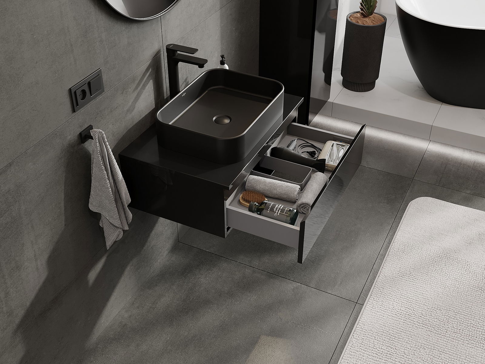 Mexen Orio meuble de salle de bain sous-lavabo 70 cm avec plan de travail, 1 tiroir, noir brillant - 91A10-07023-1-BFC70