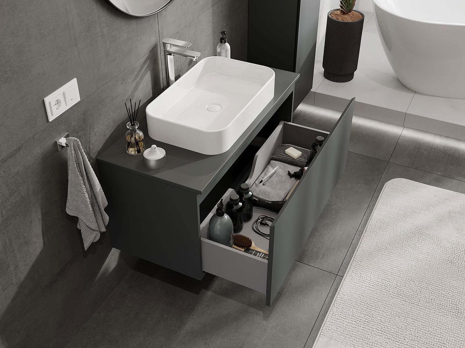 Grâce à des matériaux solides, une fabrication précise et des solutions technologiques modernes, le produit assure un confort d'utilisation, une résistance à l'humidité et aux variations de température, ainsi qu'un aspect élégant qui s'adapte à différents styles de salle de bain.