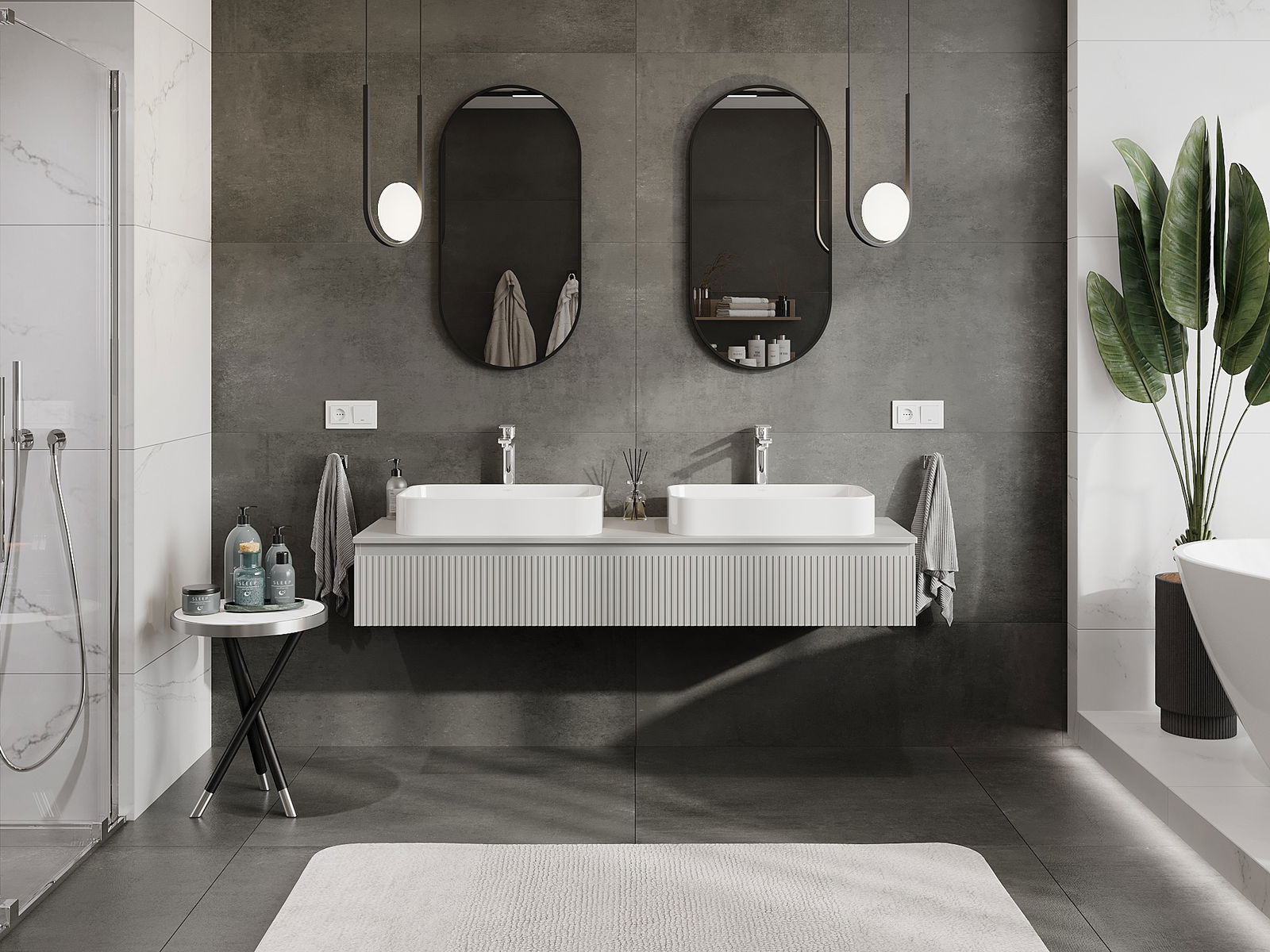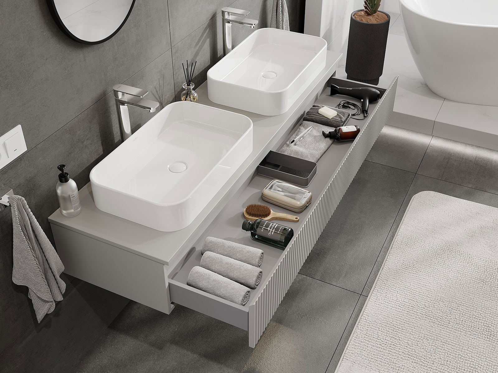 Mexen Rivel meuble de salle de bain pour lavabo 160 cm avec plan, 1 tiroir, rainuré, gris mat - 91A20-16023-1-BFC62