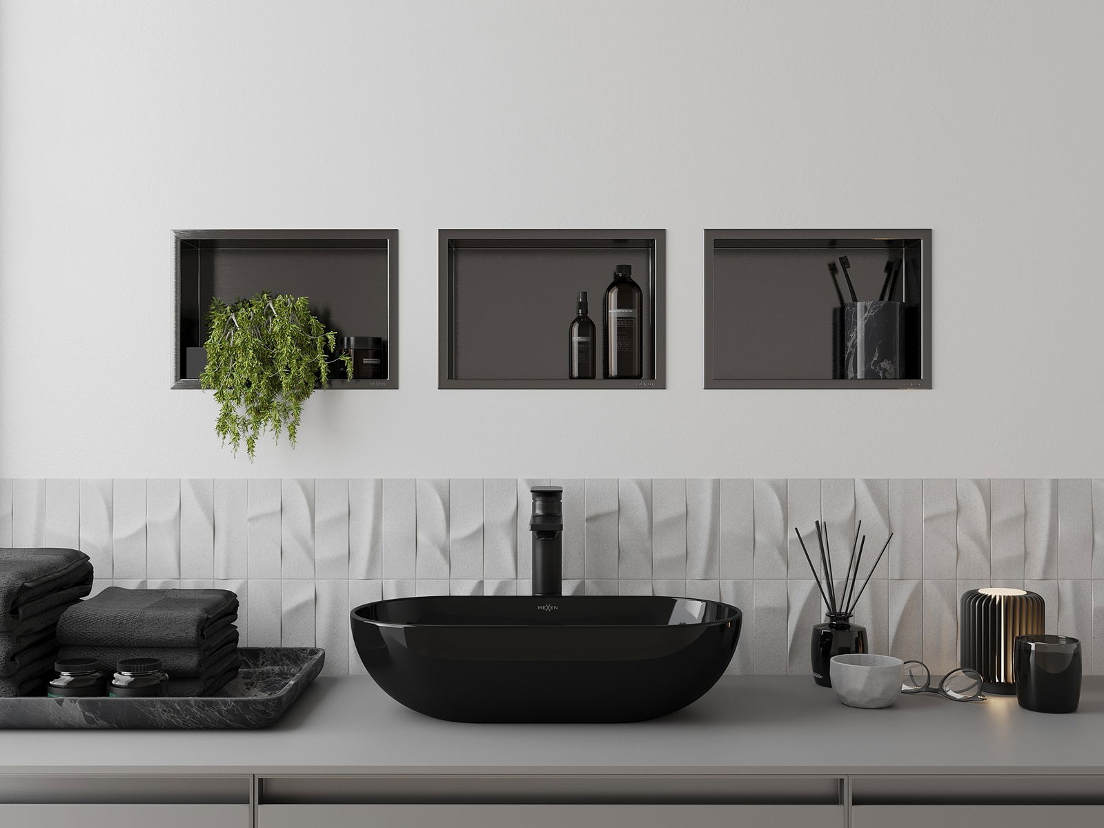 Possibilité de montage dans un mur ou dans une construction spécialement préparée. C'est une solution extrêmement moderne et fonctionnelle, permettant d'économiser de l'espace ainsi que d'adapter le produit à l'esthétique de l'intérieur et de créer une composition harmonieuse.