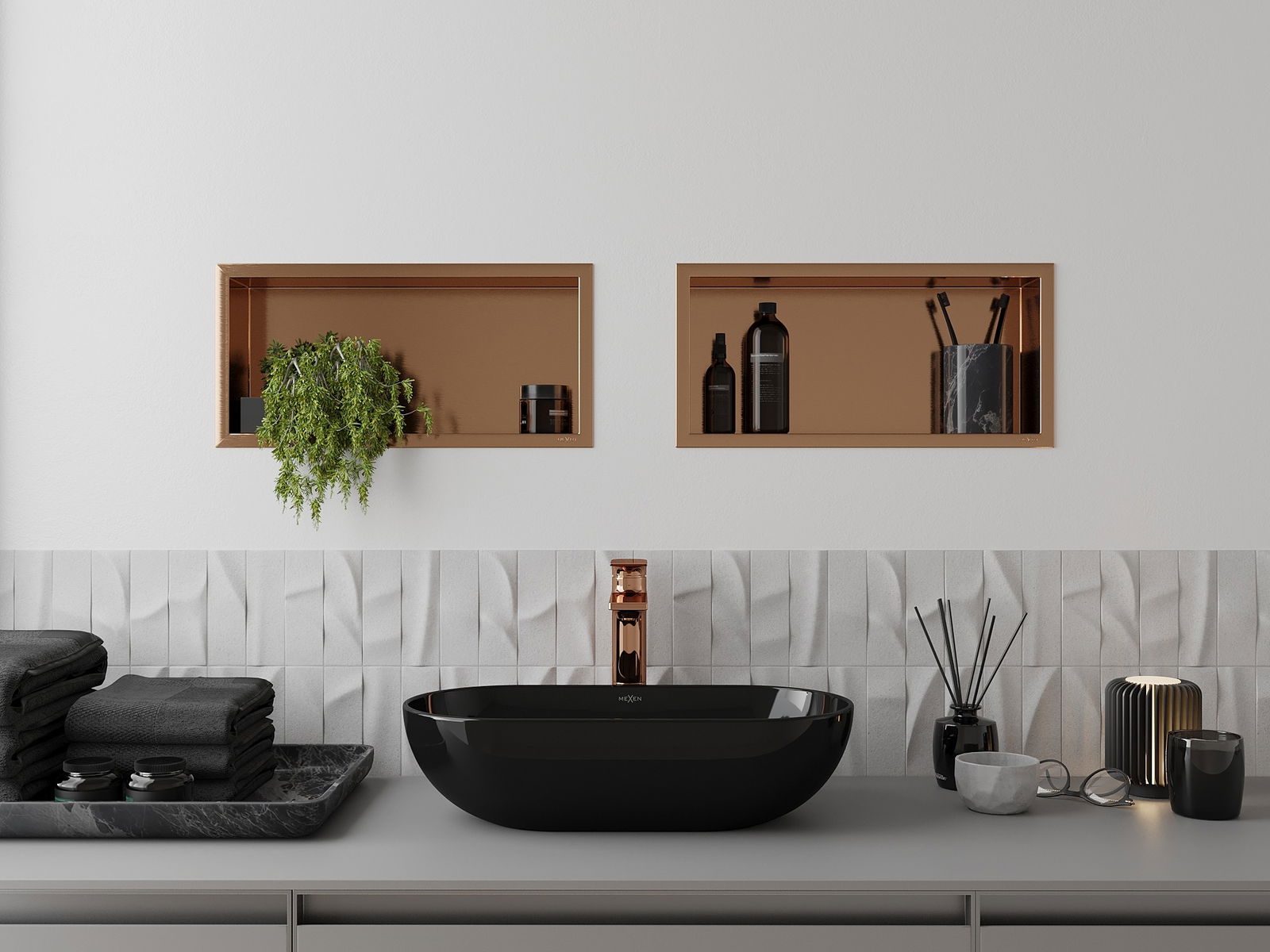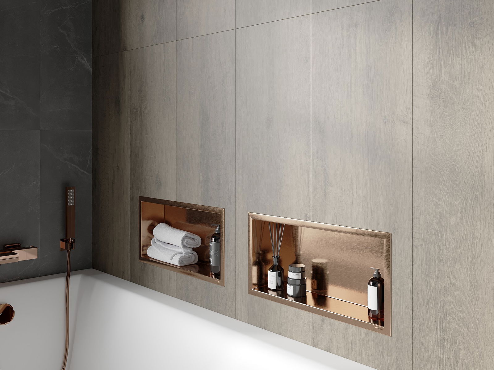 Possibilité de montage dans un mur ou dans une construction spécialement préparée. C'est une solution extrêmement moderne et fonctionnelle, permettant d'économiser de l'espace ainsi que d'adapter le produit à l'esthétique de l'intérieur et de créer une composition harmonieuse.