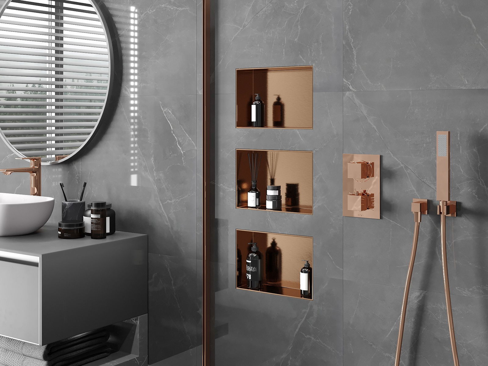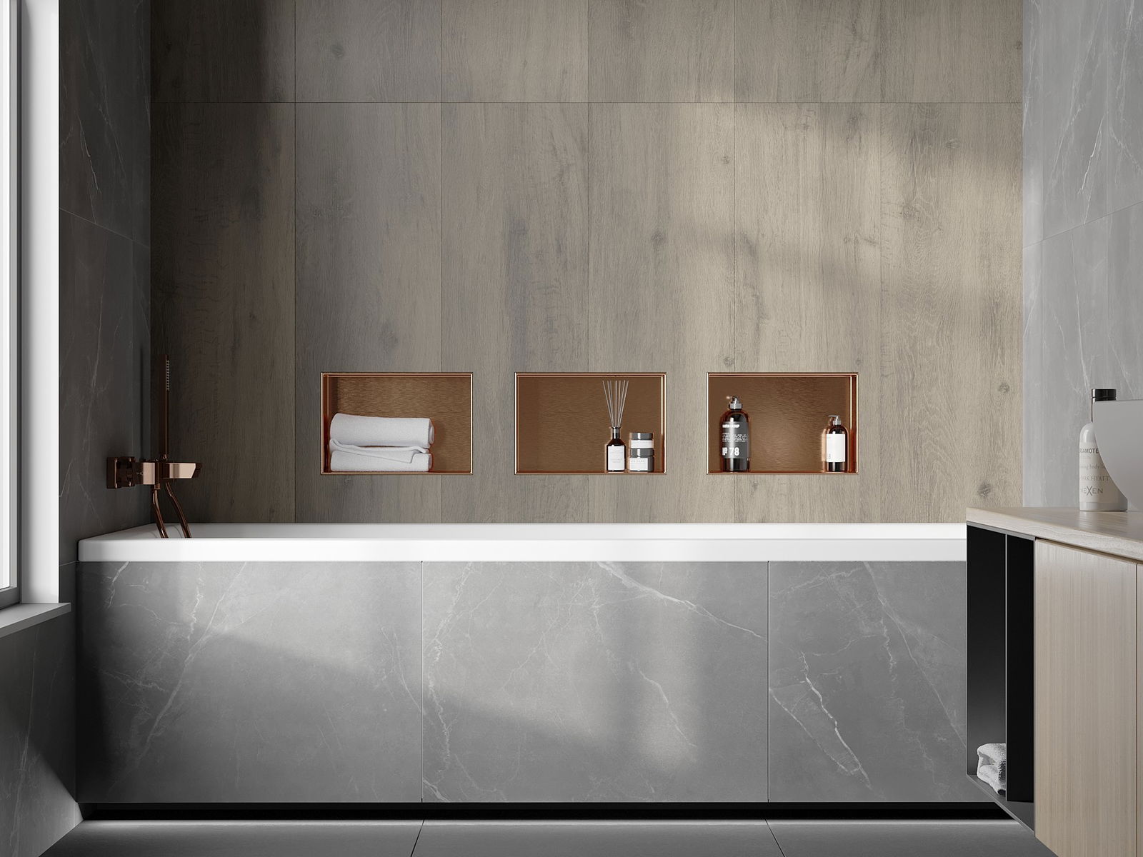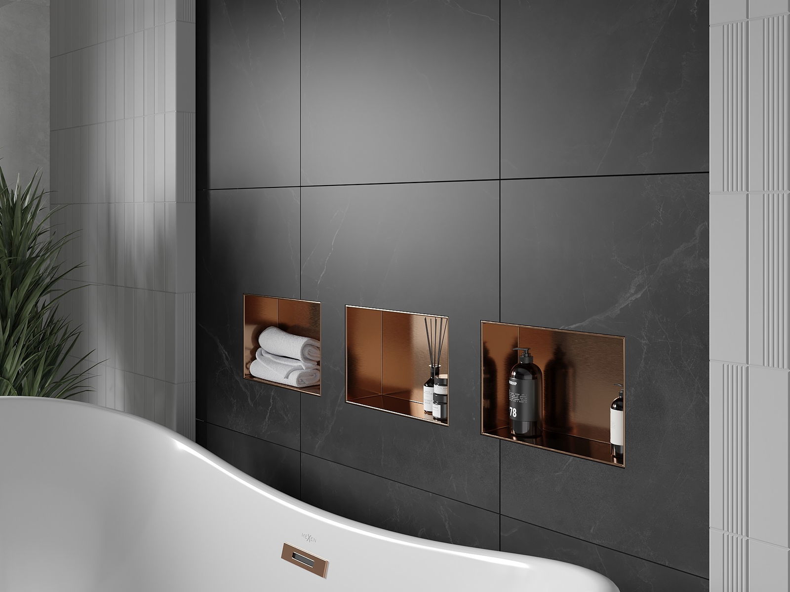 Possibilité de montage dans un mur ou dans une construction spécialement préparée. C'est une solution extrêmement moderne et fonctionnelle, permettant d'économiser de l'espace ainsi que d'adapter le produit à l'esthétique de l'intérieur et de créer une composition harmonieuse.