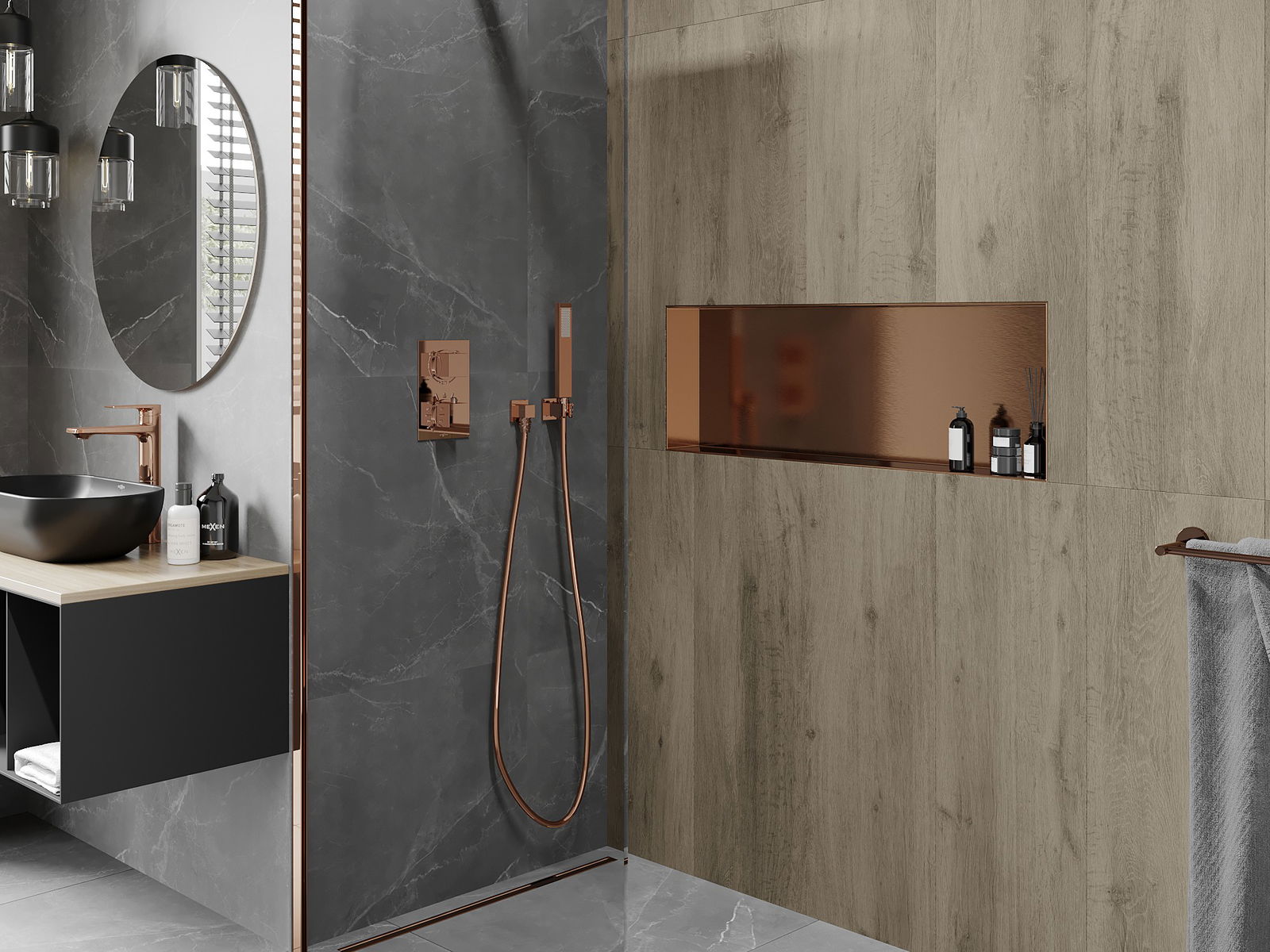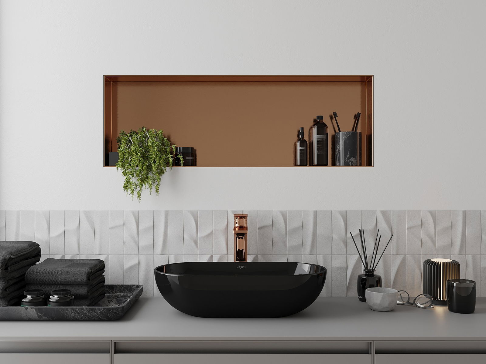 Possibilité de montage dans un mur ou dans une construction spécialement préparée. C'est une solution extrêmement moderne et fonctionnelle, permettant d'économiser de l'espace ainsi que d'adapter le produit à l'esthétique de l'intérieur et de créer une composition harmonieuse.