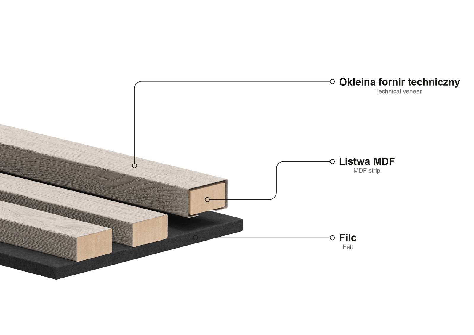 L'installation des lamelles est possible de deux manières : à l'aide de vis ou en les collant directement au mur. Les deux méthodes sont simples et ne nécessitent pas d'outils spécialisés, ce qui permet de changer rapidement l'apparence de notre intérieur.