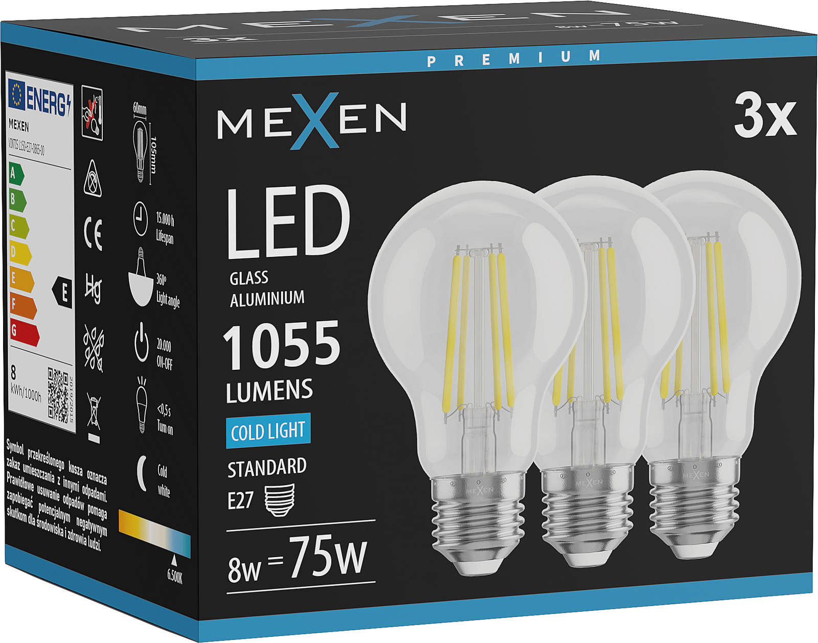 L'ampoule émet de la lumière uniformément dans toutes les directions, assurant un éclairage complet de la pièce sans zones sombres. Grâce à cela, elle est idéale pour les endroits où une lumière large et diffuse est nécessaire.