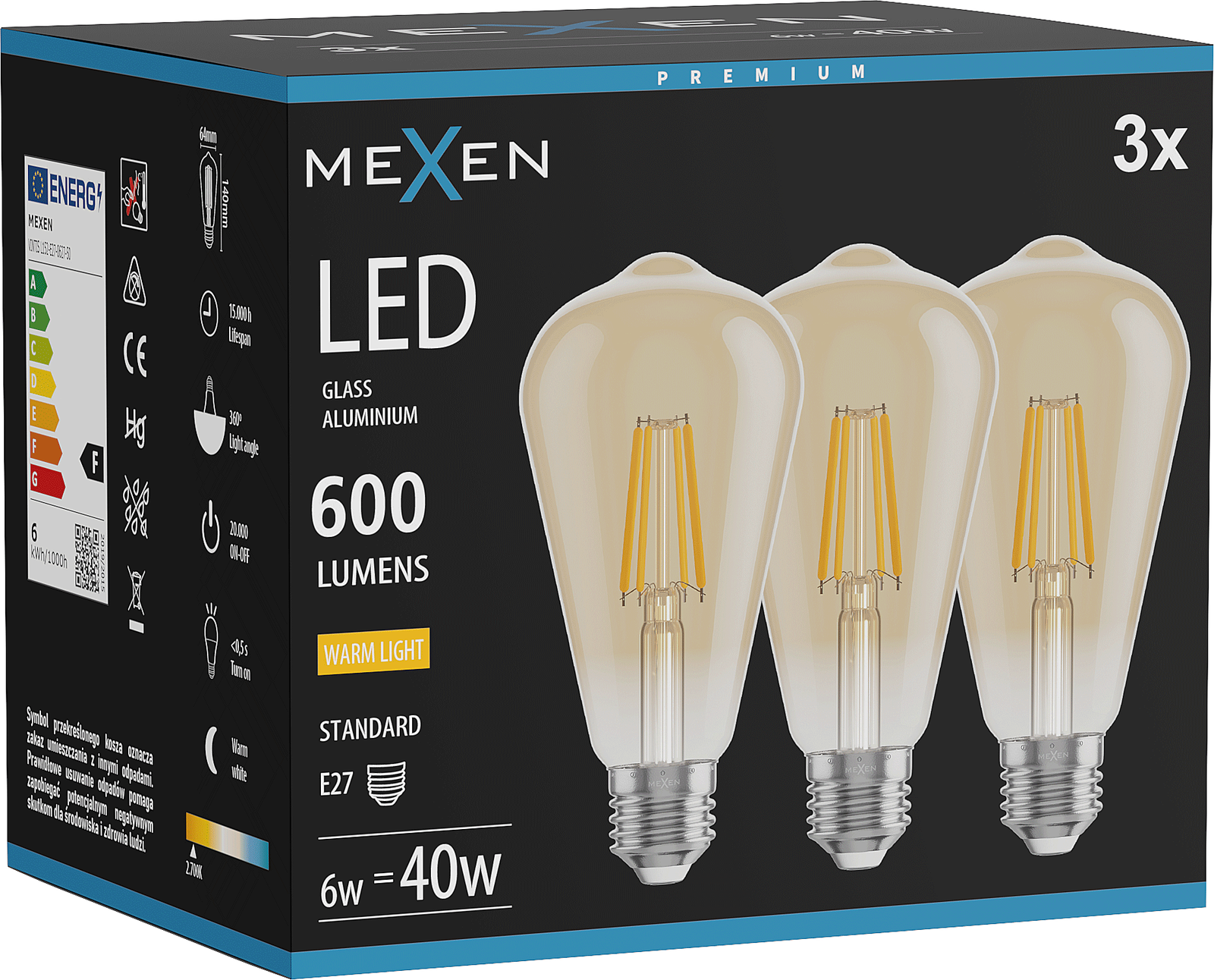Flux lumineux : 600 lm