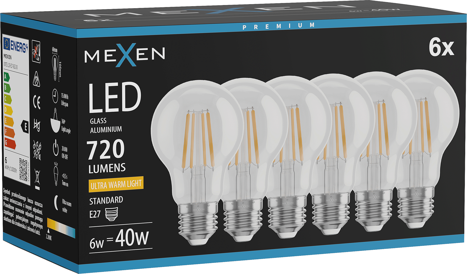 Consommation d'énergie: 6 kWh/1000 h