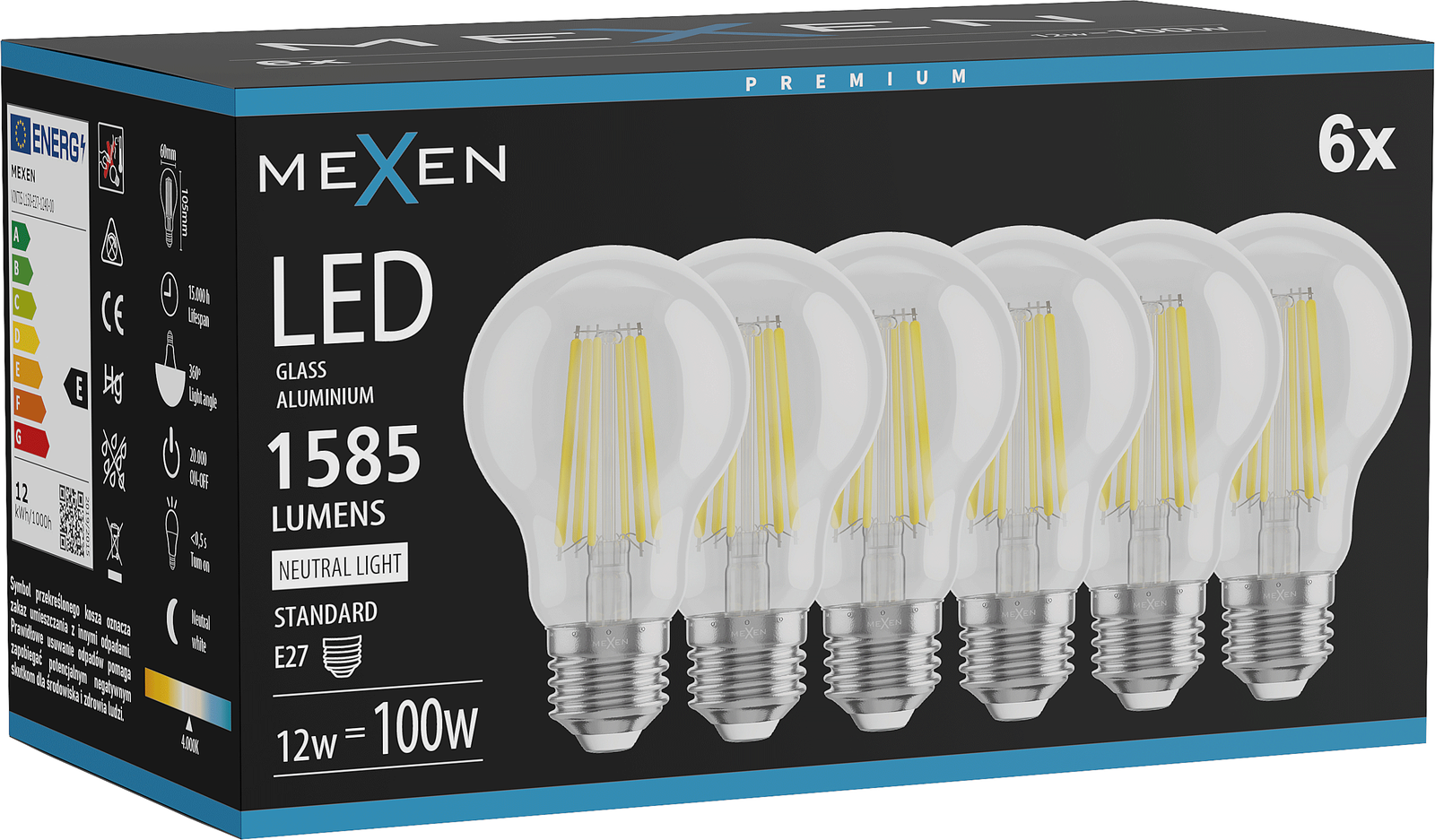 L'ampoule émet de la lumière uniformément dans toutes les directions, assurant un éclairage complet de la pièce sans zones sombres. Grâce à cela, elle est idéale pour les endroits où une lumière large et diffuse est nécessaire.