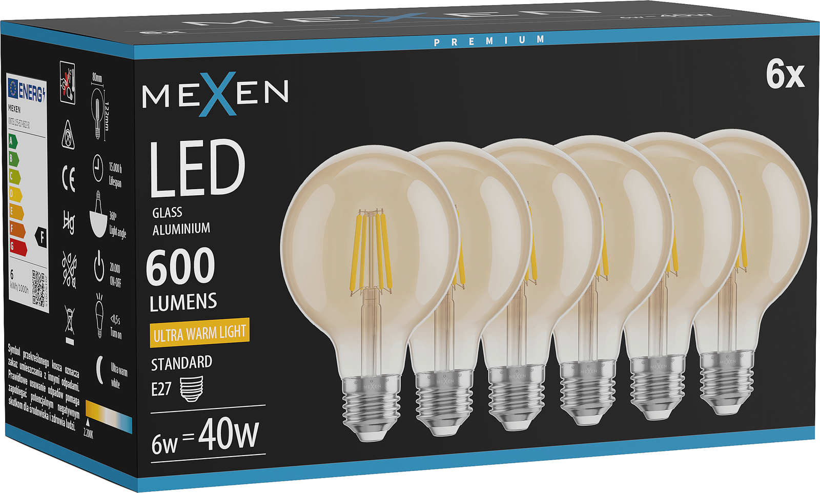 L'ampoule émet de la lumière uniformément dans toutes les directions, assurant un éclairage complet de la pièce sans zones sombres. Grâce à cela, elle est idéale pour les endroits où une lumière large et diffuse est nécessaire.
