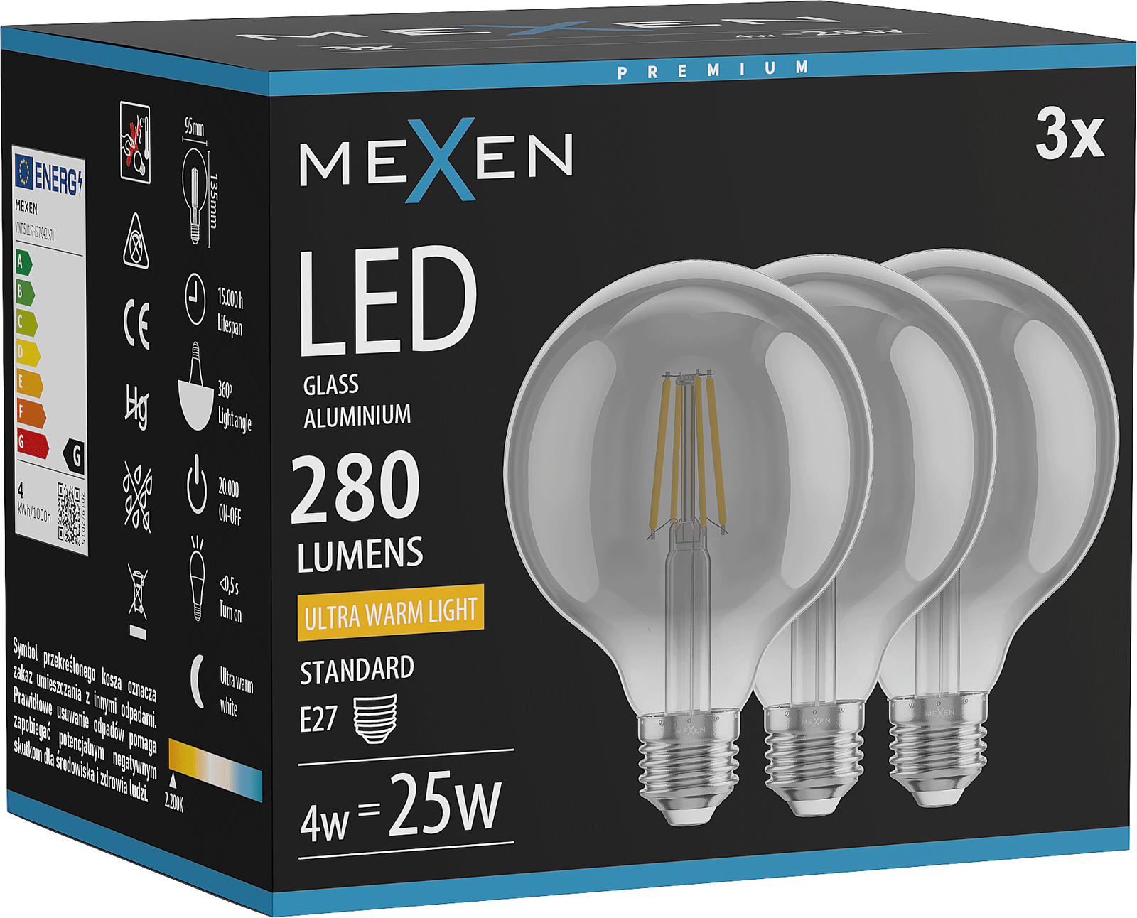 L'ampoule atteint une luminosité maximale immédiatement après l'allumage, sans besoin de "chauffage". Dès 0,5 seconde, elle assure un éclairage complet et uniforme de la pièce. Cela la rend extrêmement pratique pour une utilisation quotidienne. C'est un choix idéal partout où une source de lumière rapide et fiable est importante.