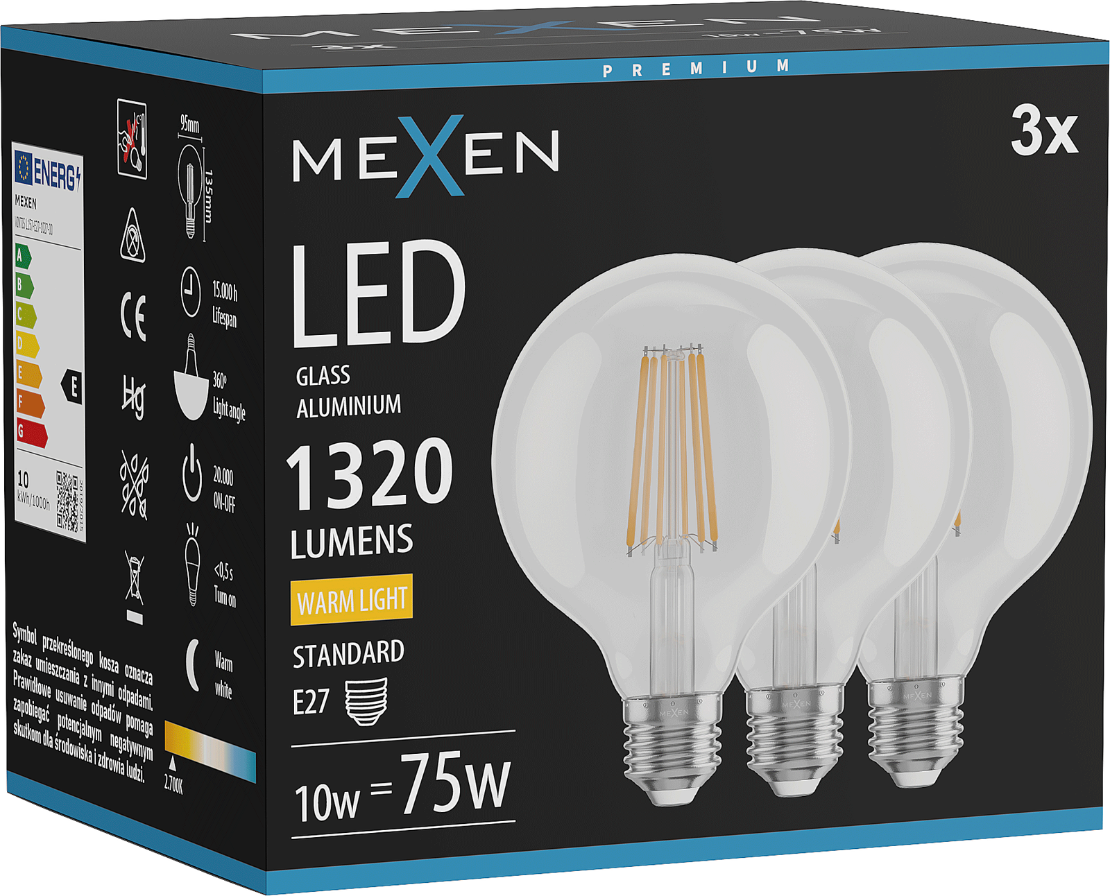 L'ampoule atteint une luminosité maximale immédiatement après l'allumage, sans besoin de "chauffage". Dès 0,5 seconde, elle assure un éclairage complet et uniforme de la pièce. Cela la rend extrêmement pratique pour une utilisation quotidienne. C'est un choix idéal partout où une source de lumière rapide et fiable est importante.