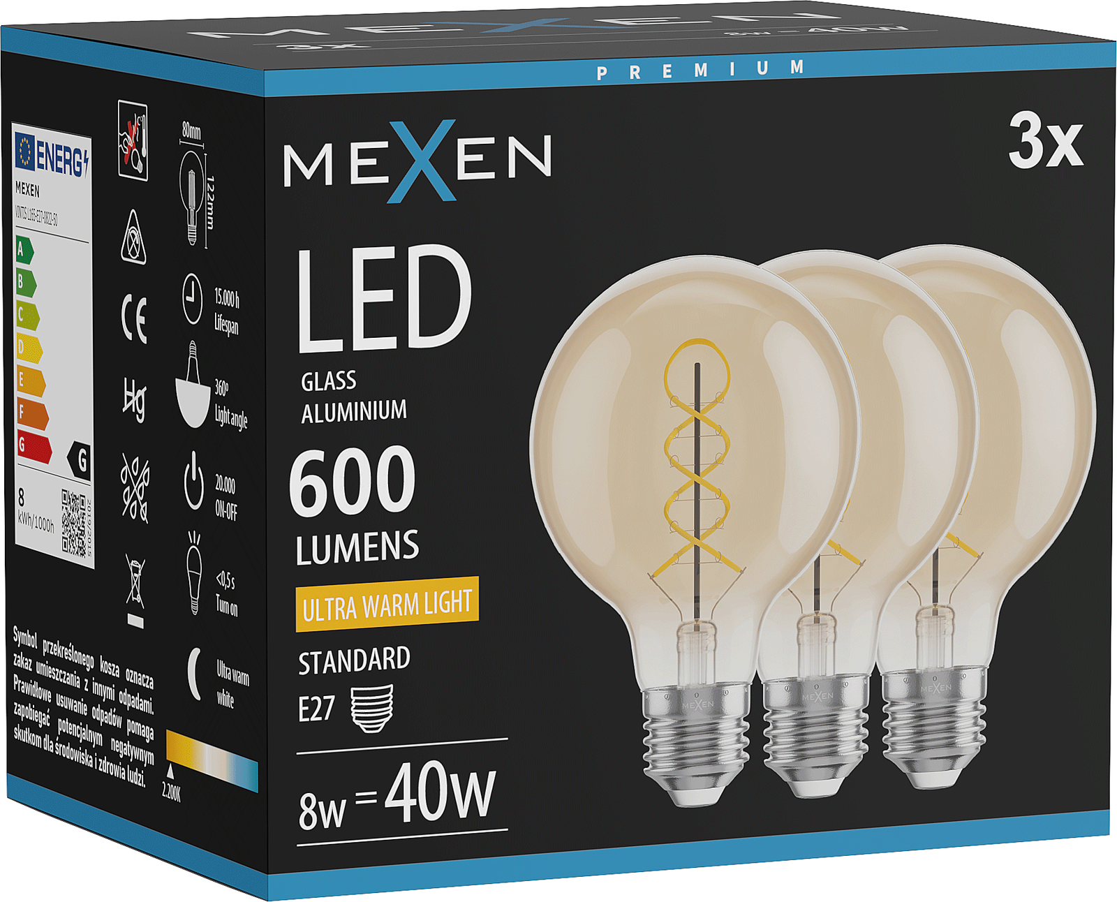 L'ampoule émet de la lumière uniformément dans toutes les directions, assurant un éclairage complet de la pièce sans zones sombres. Grâce à cela, elle est idéale pour les endroits où une lumière large et diffuse est nécessaire.