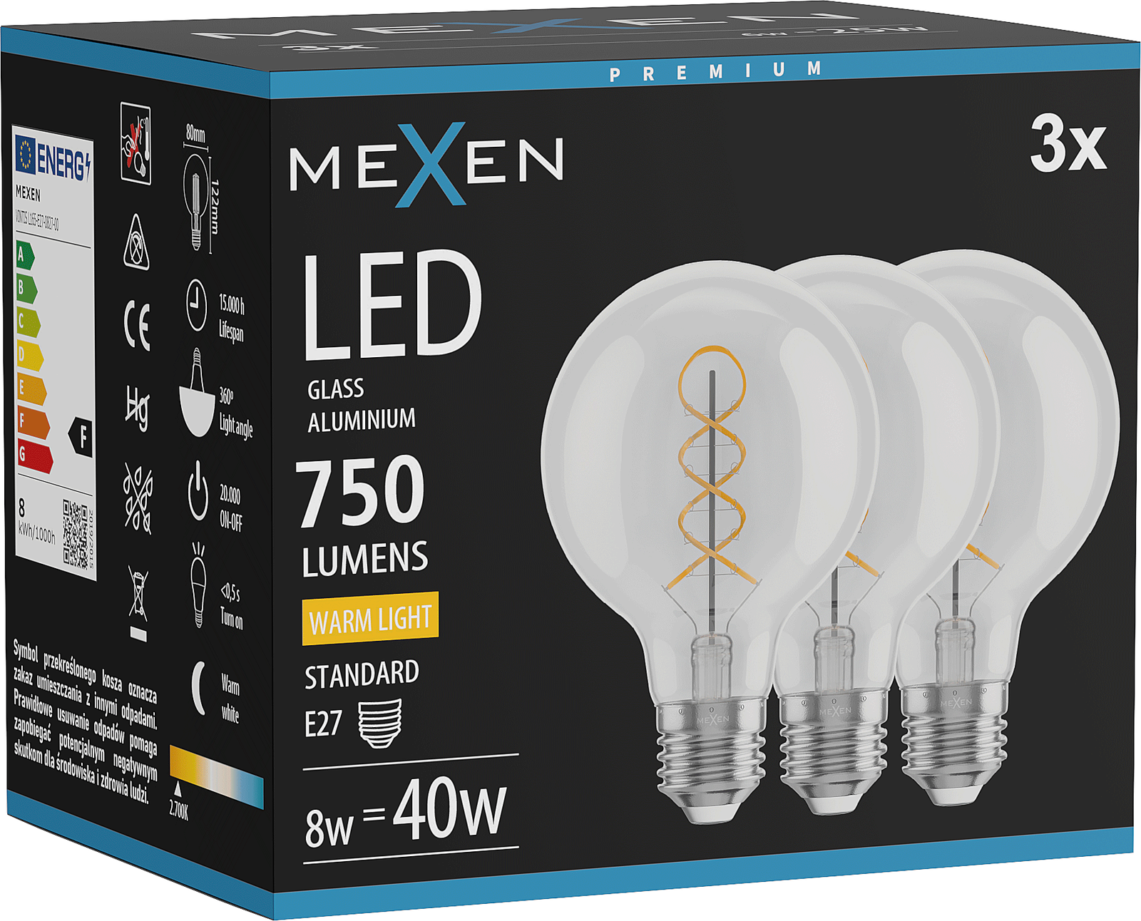 L'ampoule émet de la lumière uniformément dans toutes les directions, assurant un éclairage complet de la pièce sans zones sombres. Grâce à cela, elle est idéale pour les endroits où une lumière large et diffuse est nécessaire.