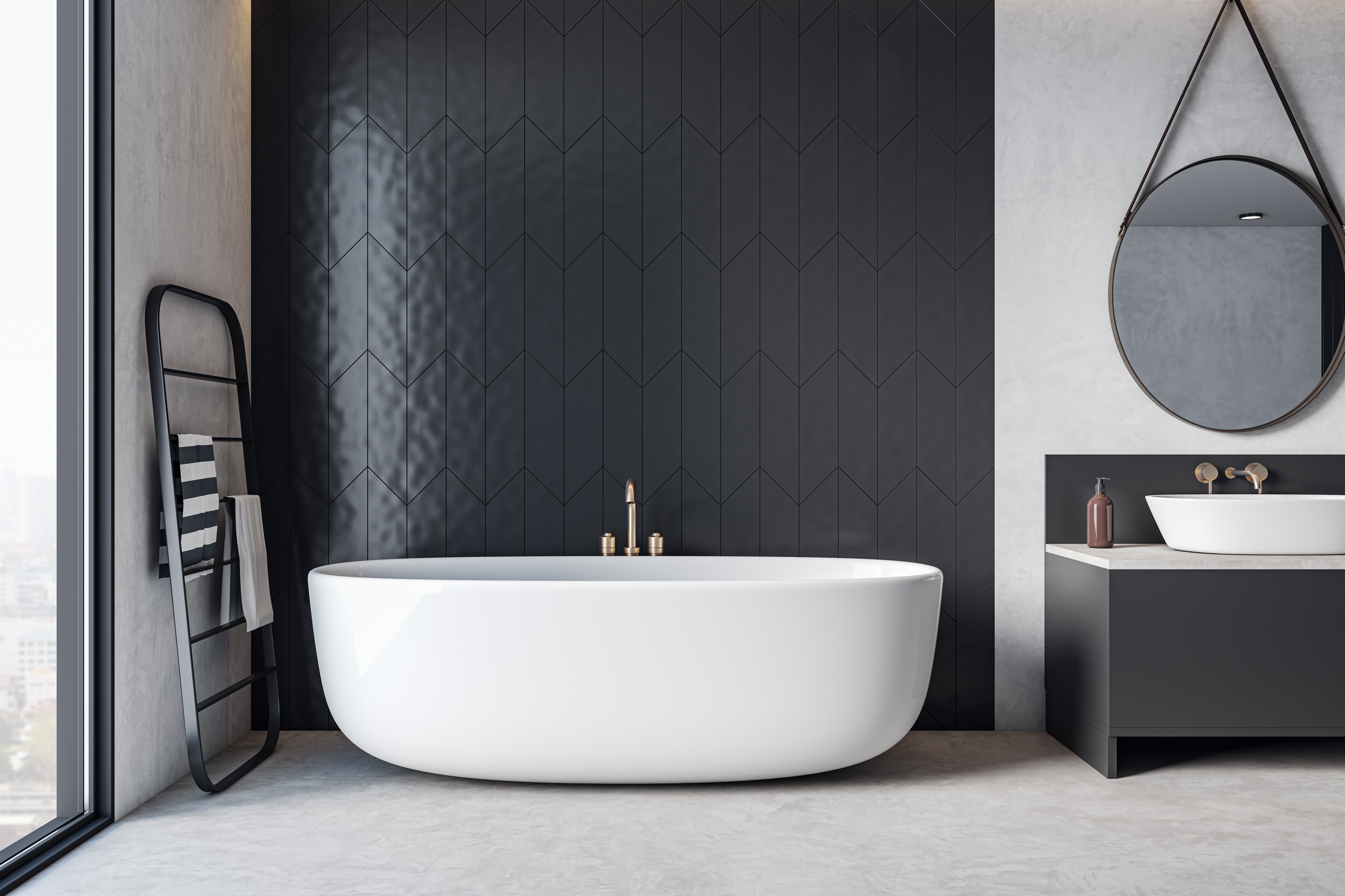 Dans les salles de bains modernes, la robinetterie noire est très attrayante. Les lavabos en composite foncé ainsi que les baignoires autoportantes noires sont populaires. Toutefois, ces surfaces sont plus difficiles à maintenir propres, car les dépôts sont plus visibles que sur la robinetterie blanche.
