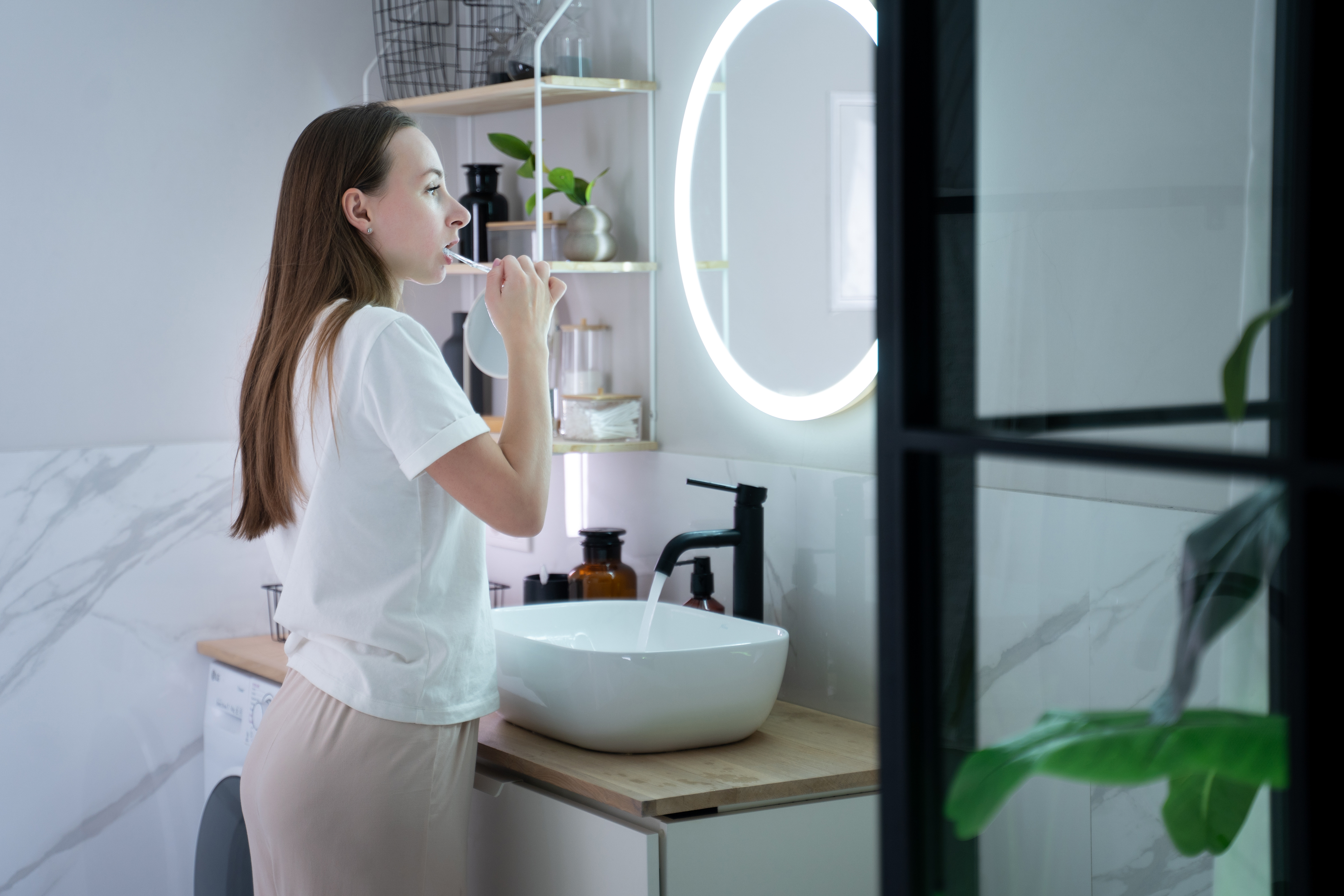 Si vous faites partie des personnes peu familières avec le concept de bricolage, mais que vous souhaitez néanmoins aménager l'espace de la salle de bain de manière originale, vous n'avez pas besoin de peindre ou de coller quoi que ce soit sur la surface du miroir. Il vous suffit de placer sous le miroir et autour de celui-ci quelques éléments décoratifs. Cela peut être des accessoires de salle de bain aux couleurs et formes originales, des éléments décoratifs d'éclairage. Un excellent choix peut être un éclairage LED installé autour du miroir ou des appliques placées de chaque côté de celui-ci. Les plantes vivantes se reflétant dans le miroir peuvent également être un ajout merveilleux.