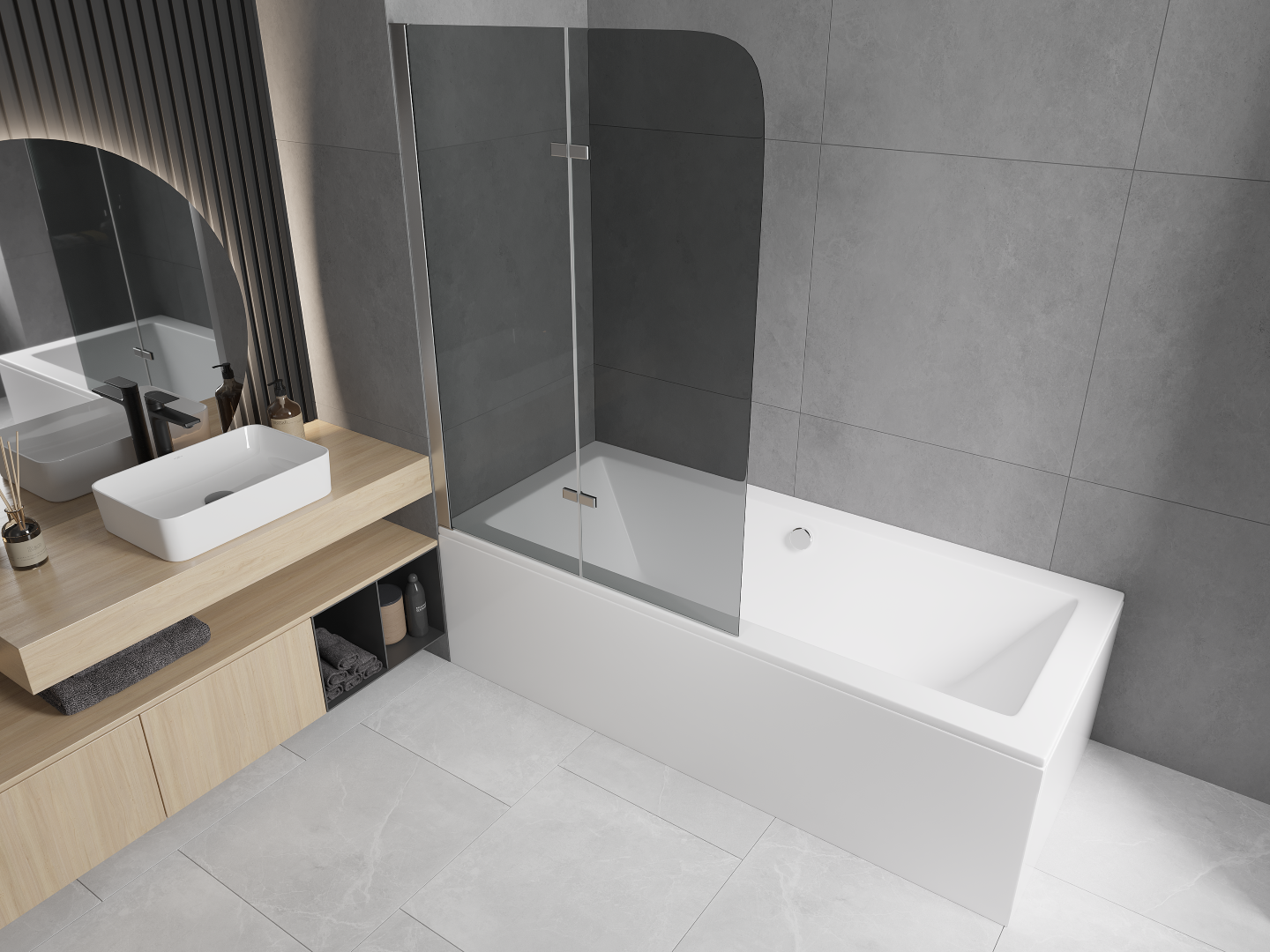 En outre, nous n'avons pas à nous soucier de savoir dans quel intérieur la baignoire avec pare-bain s'intègre. Elle convient en effet à toute salle de bains, même à une petite. Vous pouvez installer un pare-bain accordéon ou coulissant sur n'importe quelle baignoire. Cela réduit également les coûts d'aménagement de la salle de bains. Une baignoire séparée et une cabine de douche séparée dans la salle de bains prennent non seulement beaucoup de place, mais génèrent également des coûts supplémentaires.