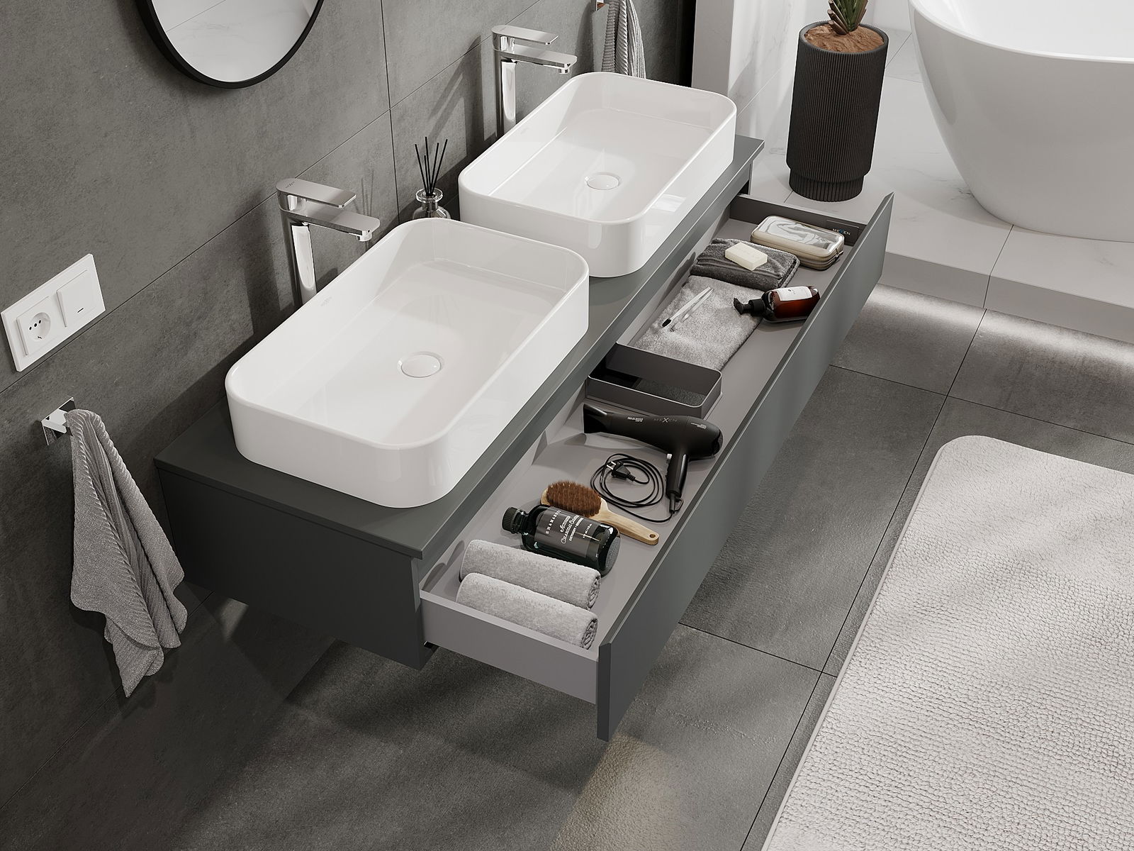 Mexen Orio Badezimmerschrank für Waschtisch 140 cm mit Arbeitsplatte, 1 Schublade, Graphit matt - 91A10-14023-1-BFC66