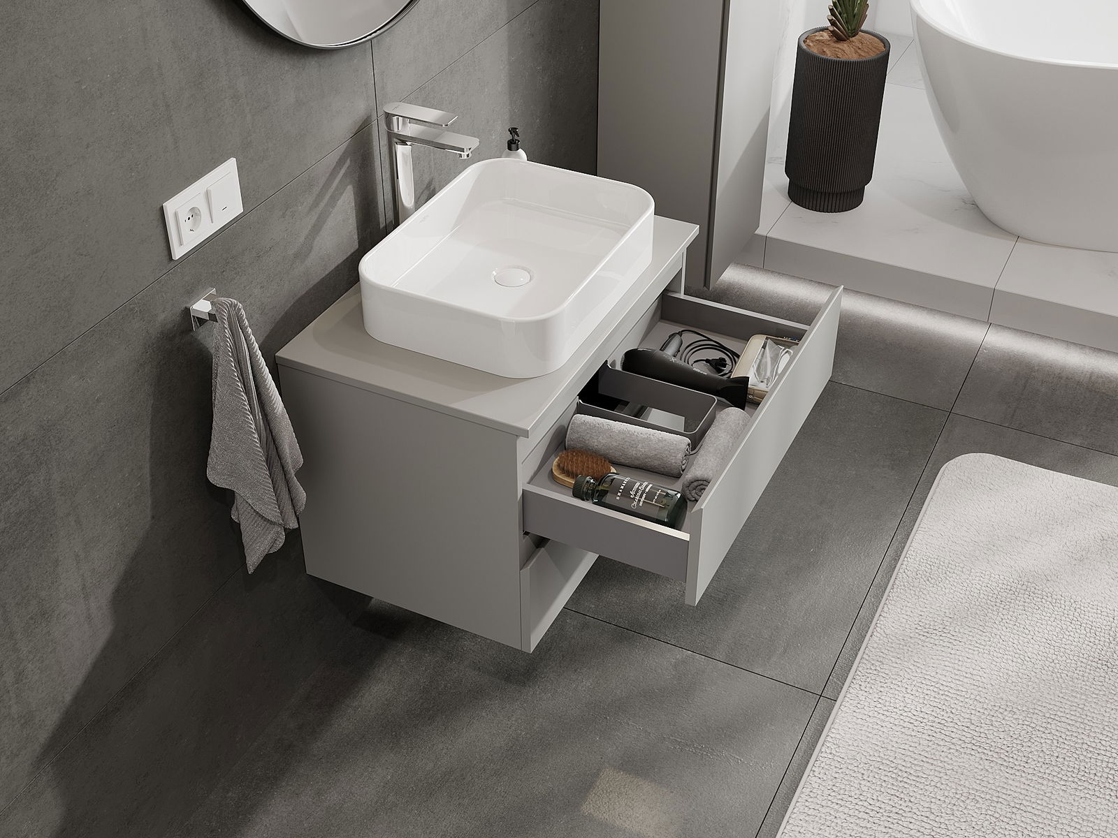 Farbe der Waschtischplatte: Graumatt
