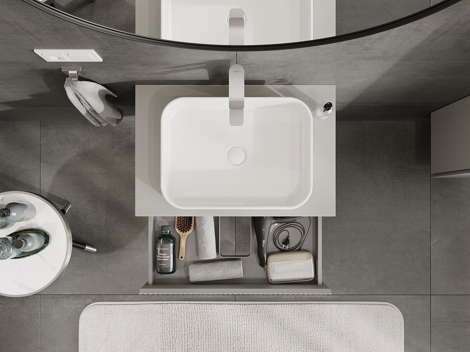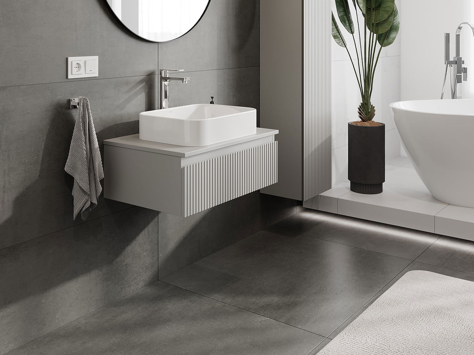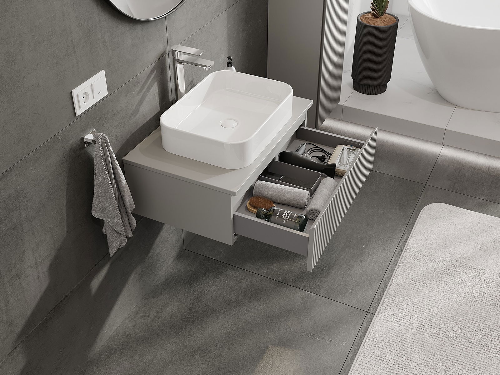 Mexen Rivel Badezimmerunterschrank 70 cm mit Arbeitsplatte, 1 Schublade, gerillt, grau matt - 91A20-07023-1-BFC62
