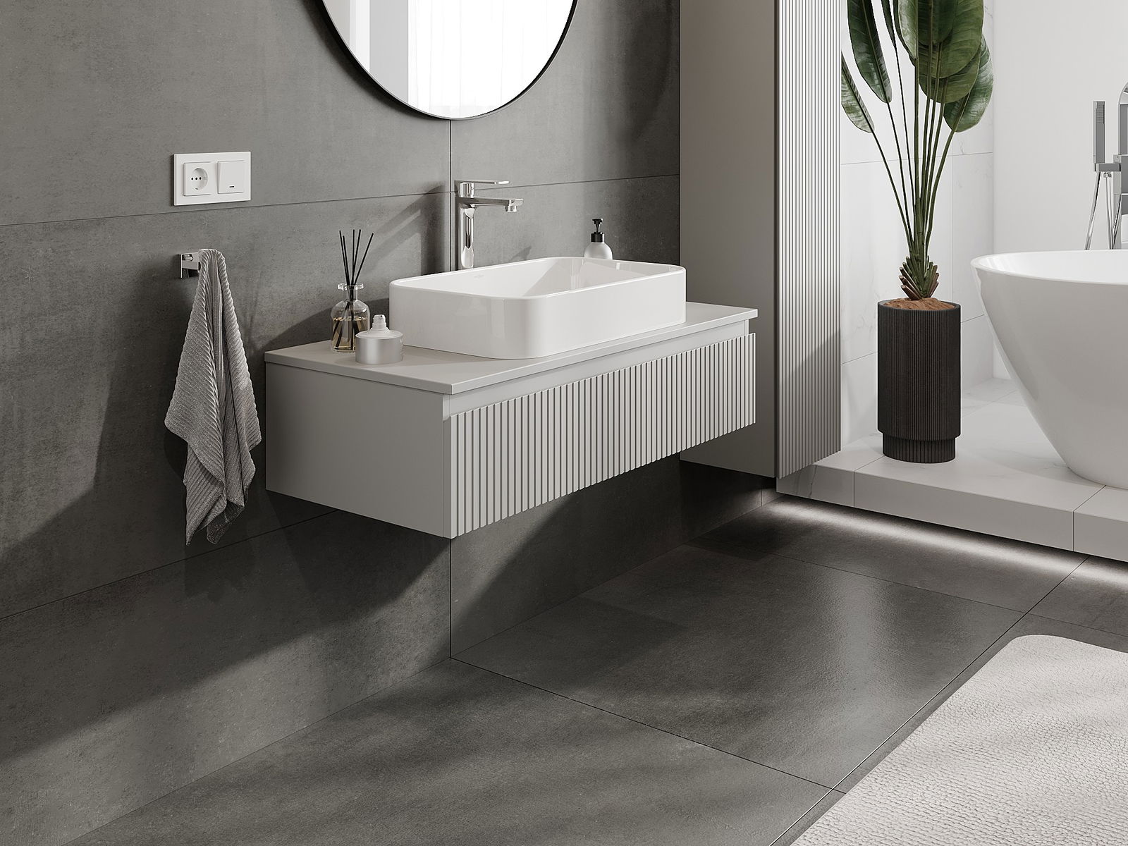 Mexen Rivel Badezimmer-Unterschrank 100 cm mit Arbeitsplatte, 1 Schublade, gerillt, grau matt - 91A20-10023-1-BFC62