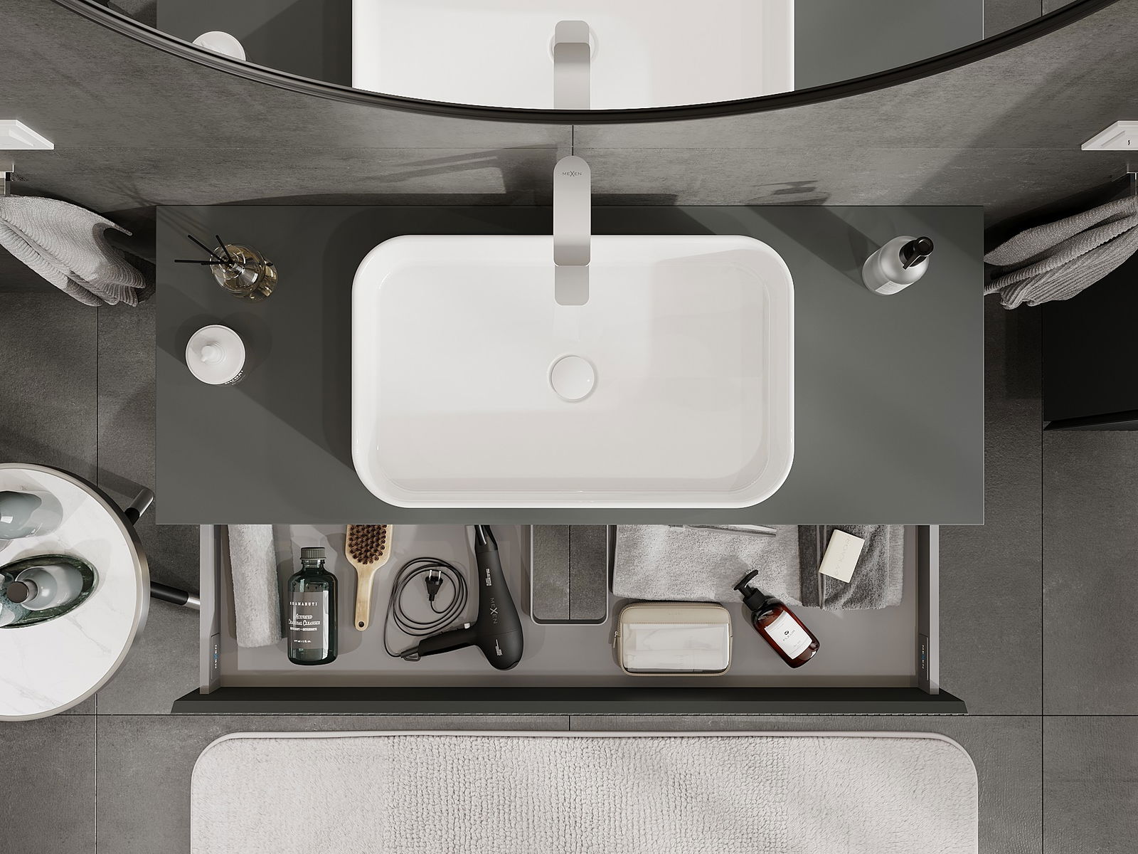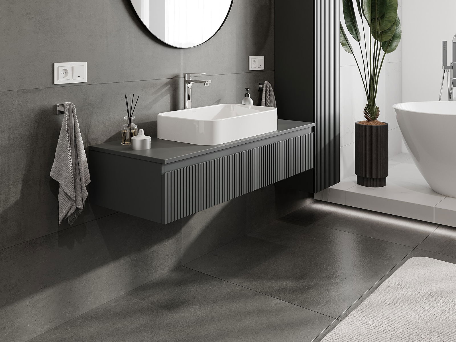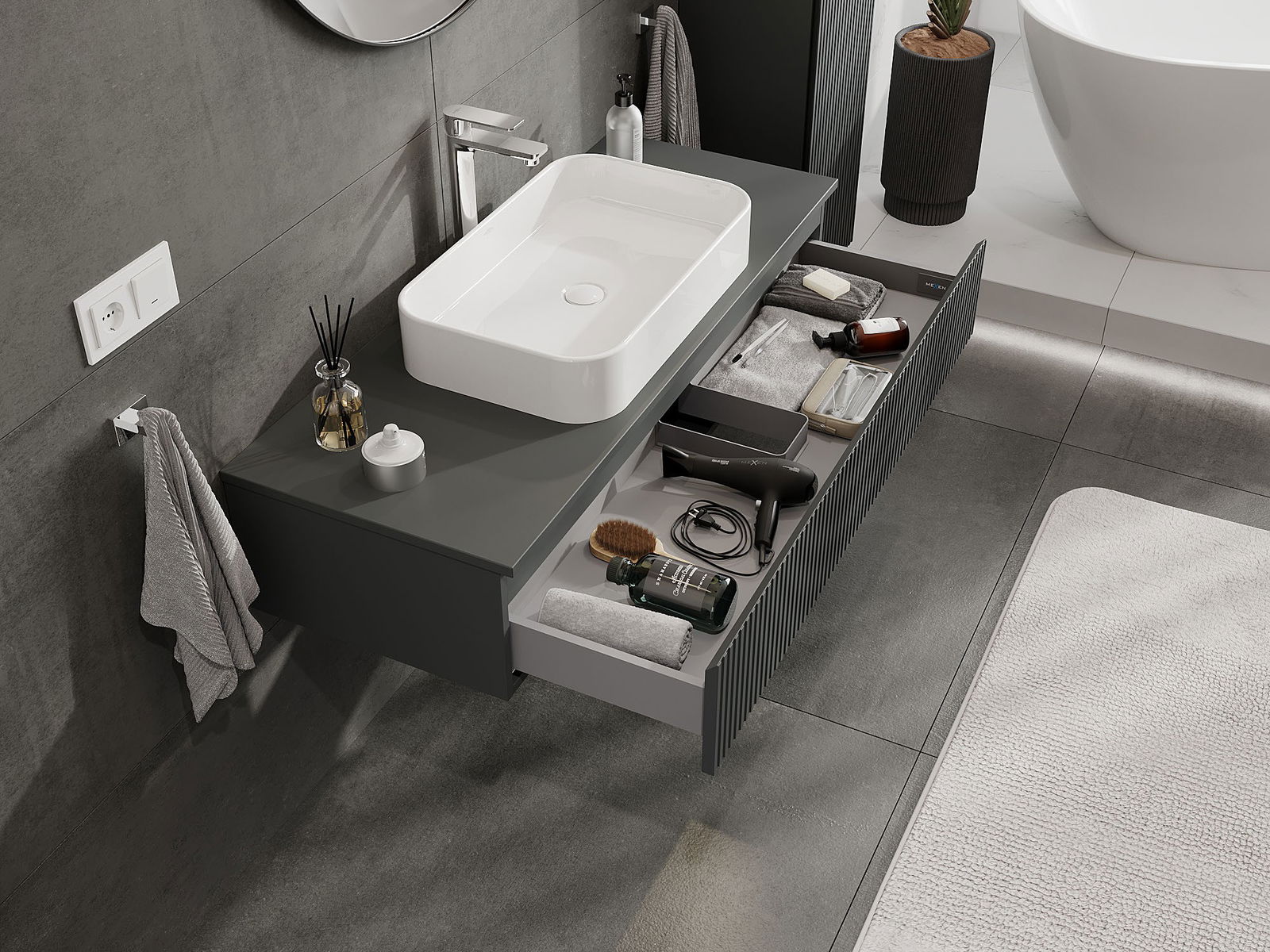 Mexen Rivel Badezimmer-Unterschrank 120 cm mit Arbeitsplatte, 1 Schublade, geriffelt, Graphit Matt - 91A20-12023-1-BFC66