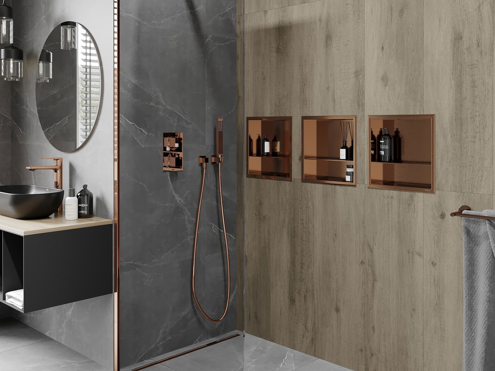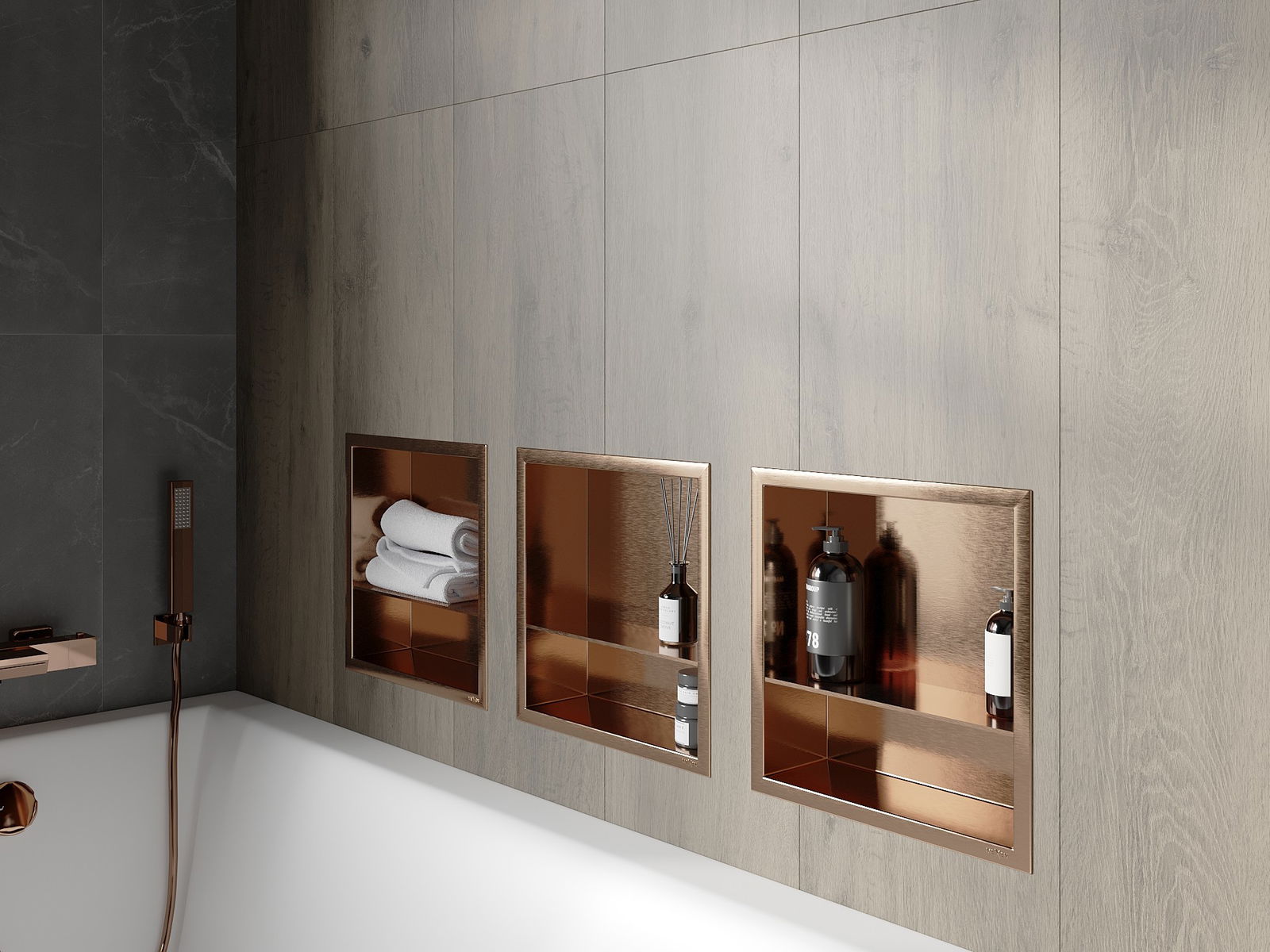 Möglichkeit zur Montage in der Wand oder in einer speziell vorbereiteten Verkleidung. Es ist eine äußerst moderne und funktionale Lösung, die es ermöglicht, Platz zu sparen und das Produkt an die Ästhetik des Raums anzupassen und eine harmonische Komposition zu schaffen.