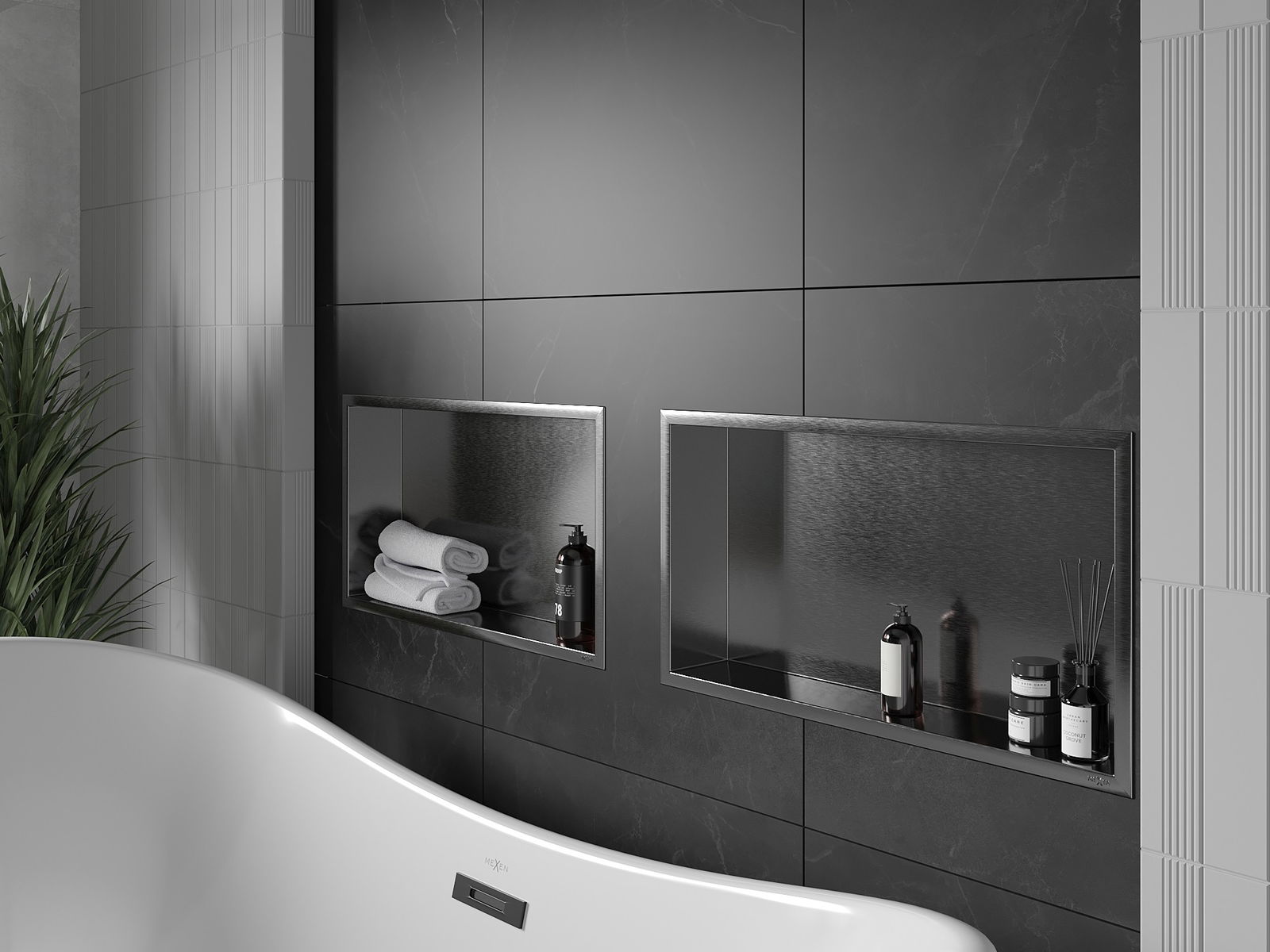 Mexen X-Wall-R Nischenregal mit Flansch 60 x 30 cm, gebürstet in Gun Grey - 19E0603010