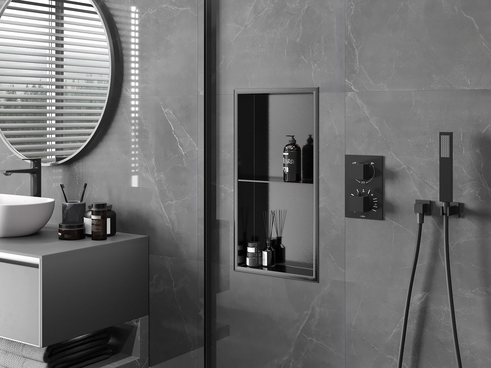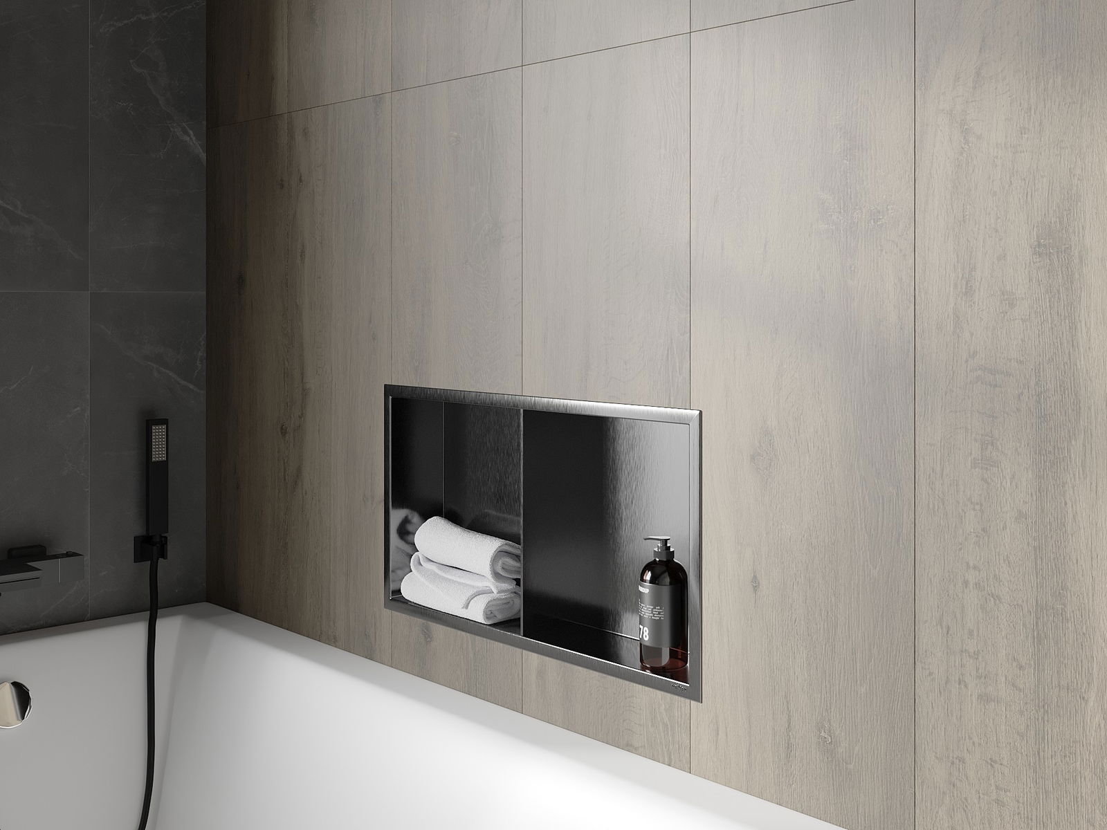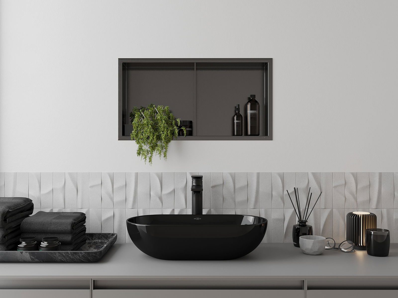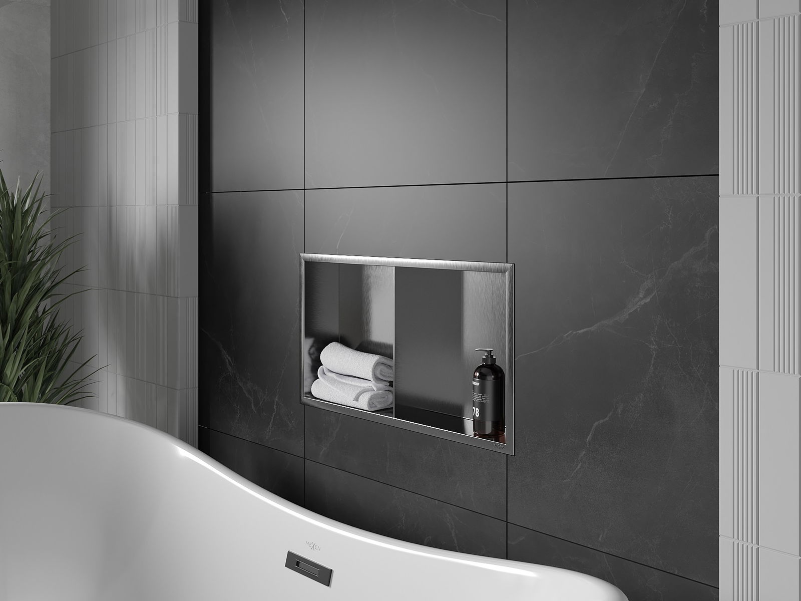 Möglichkeit zur Montage in der Wand oder in einer speziell vorbereiteten Verkleidung. Es ist eine äußerst moderne und funktionale Lösung, die es ermöglicht, Platz zu sparen und das Produkt an die Ästhetik des Raums anzupassen und eine harmonische Komposition zu schaffen.