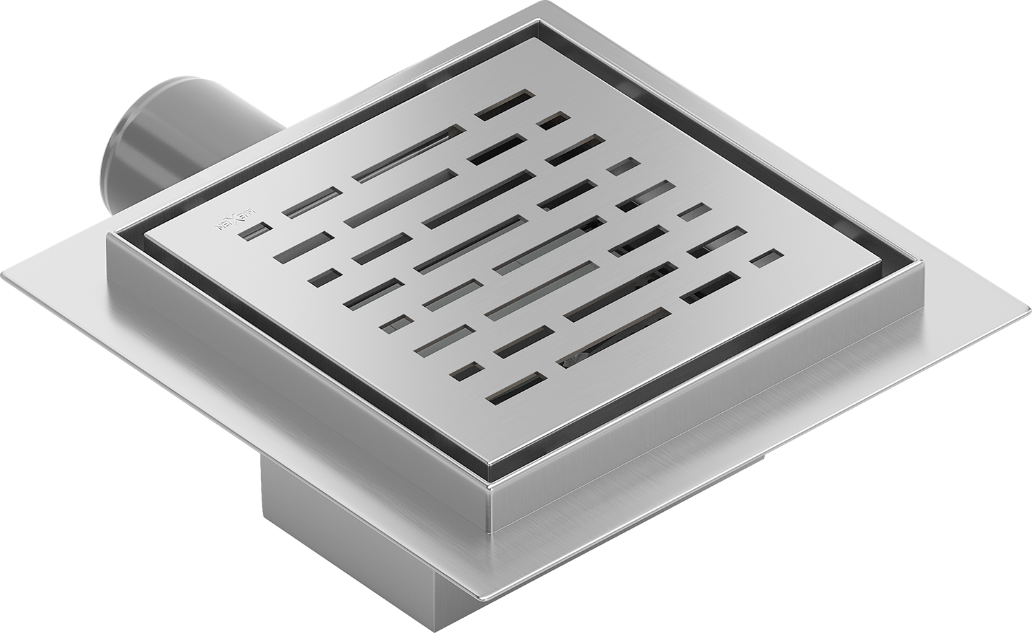 Die beidseitige Abdeckung mit der Möglichkeit, sie jederzeit zu drehen, ermöglicht eine Änderung der Anordnung. Auf einer Seite befindet sich glatter Edelstahl, beim Umdrehen kann die Abdeckung mit Fliesen verkleidet werden, um eine Verbindung mit dem Boden herzustellen.