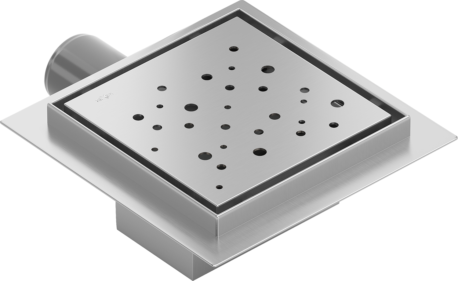 Die beidseitige Abdeckung mit der Möglichkeit, sie jederzeit zu drehen, ermöglicht eine Änderung der Anordnung. Auf einer Seite befindet sich glatter Edelstahl, beim Umdrehen kann die Abdeckung mit Fliesen verkleidet werden, um eine Verbindung mit dem Boden herzustellen.
