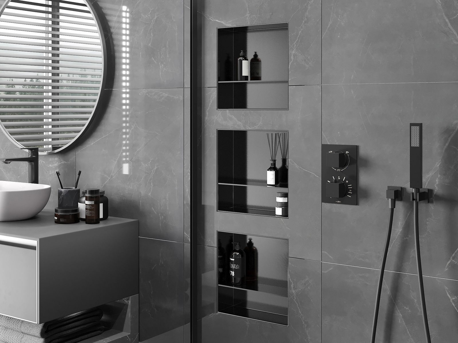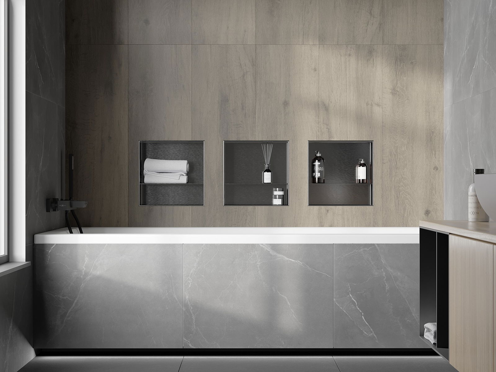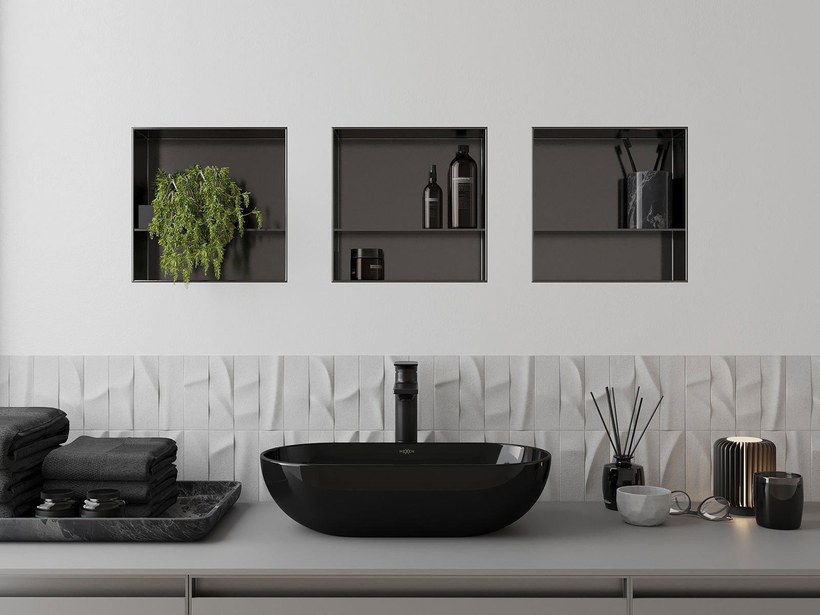 Möglichkeit zur Montage in der Wand oder in einer speziell vorbereiteten Verkleidung. Es ist eine äußerst moderne und funktionale Lösung, die es ermöglicht, Platz zu sparen und das Produkt an die Ästhetik des Raums anzupassen und eine harmonische Komposition zu schaffen.