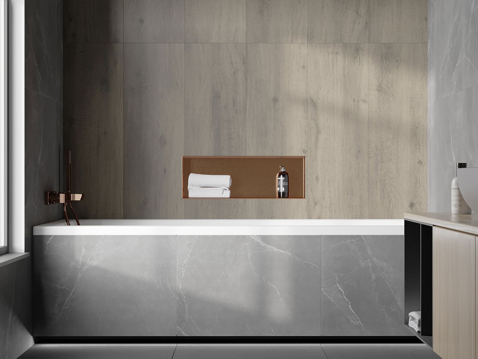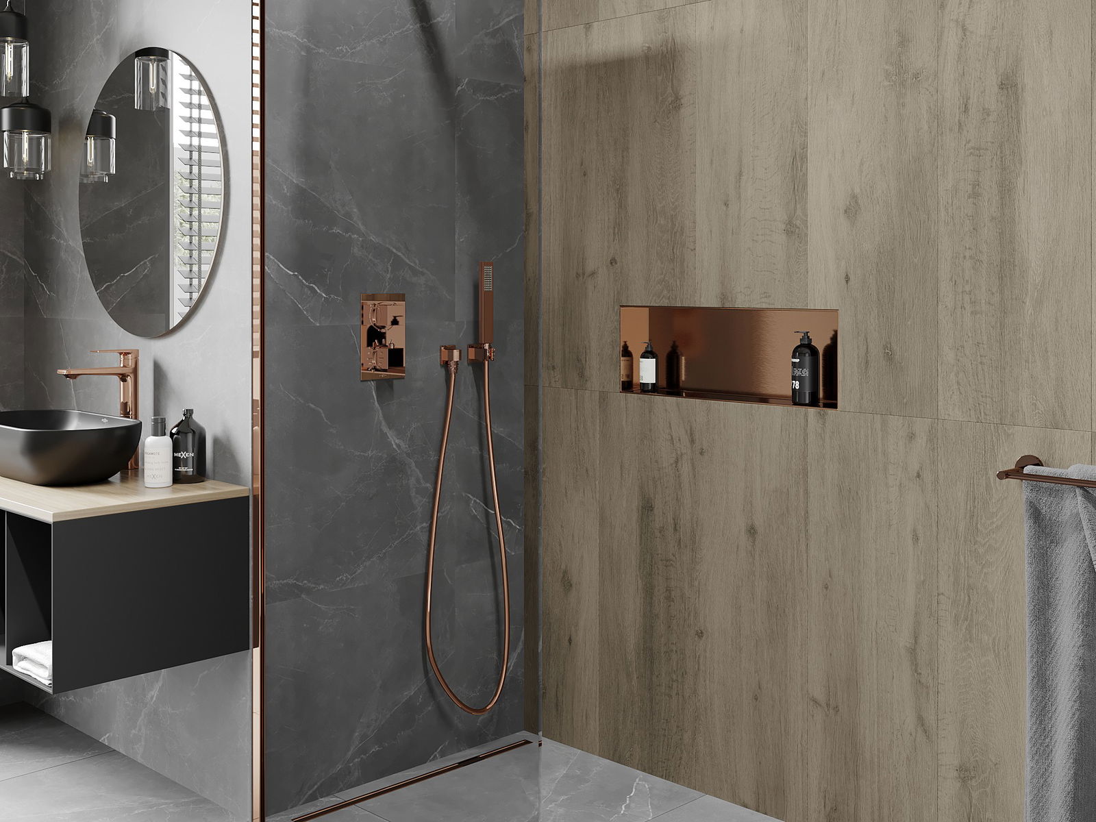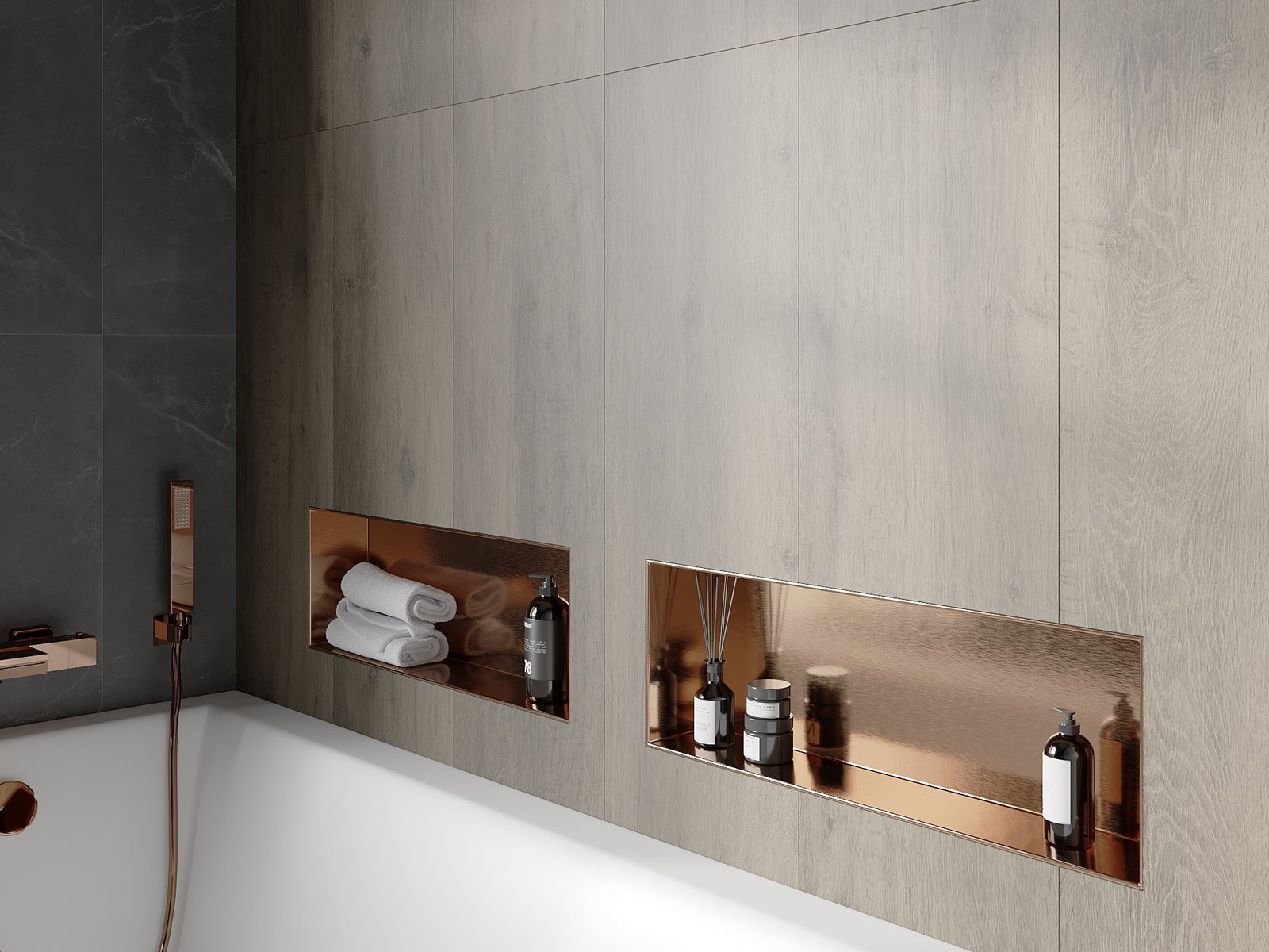 Möglichkeit zur Montage in der Wand oder in einer speziell vorbereiteten Verkleidung. Es ist eine äußerst moderne und funktionale Lösung, die es ermöglicht, Platz zu sparen und das Produkt an die Ästhetik des Raums anzupassen und eine harmonische Komposition zu schaffen.