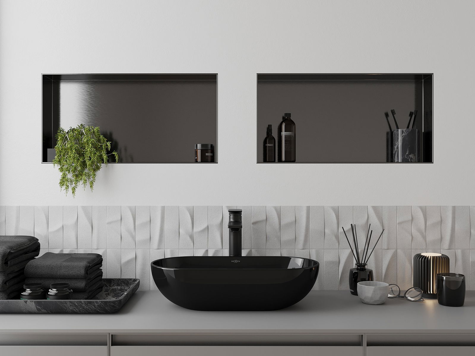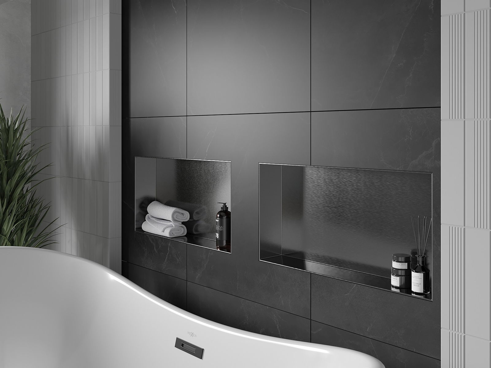Möglichkeit zur Montage in der Wand oder in einer speziell vorbereiteten Verkleidung. Es ist eine äußerst moderne und funktionale Lösung, die es ermöglicht, Platz zu sparen und das Produkt an die Ästhetik des Raums anzupassen und eine harmonische Komposition zu schaffen.
