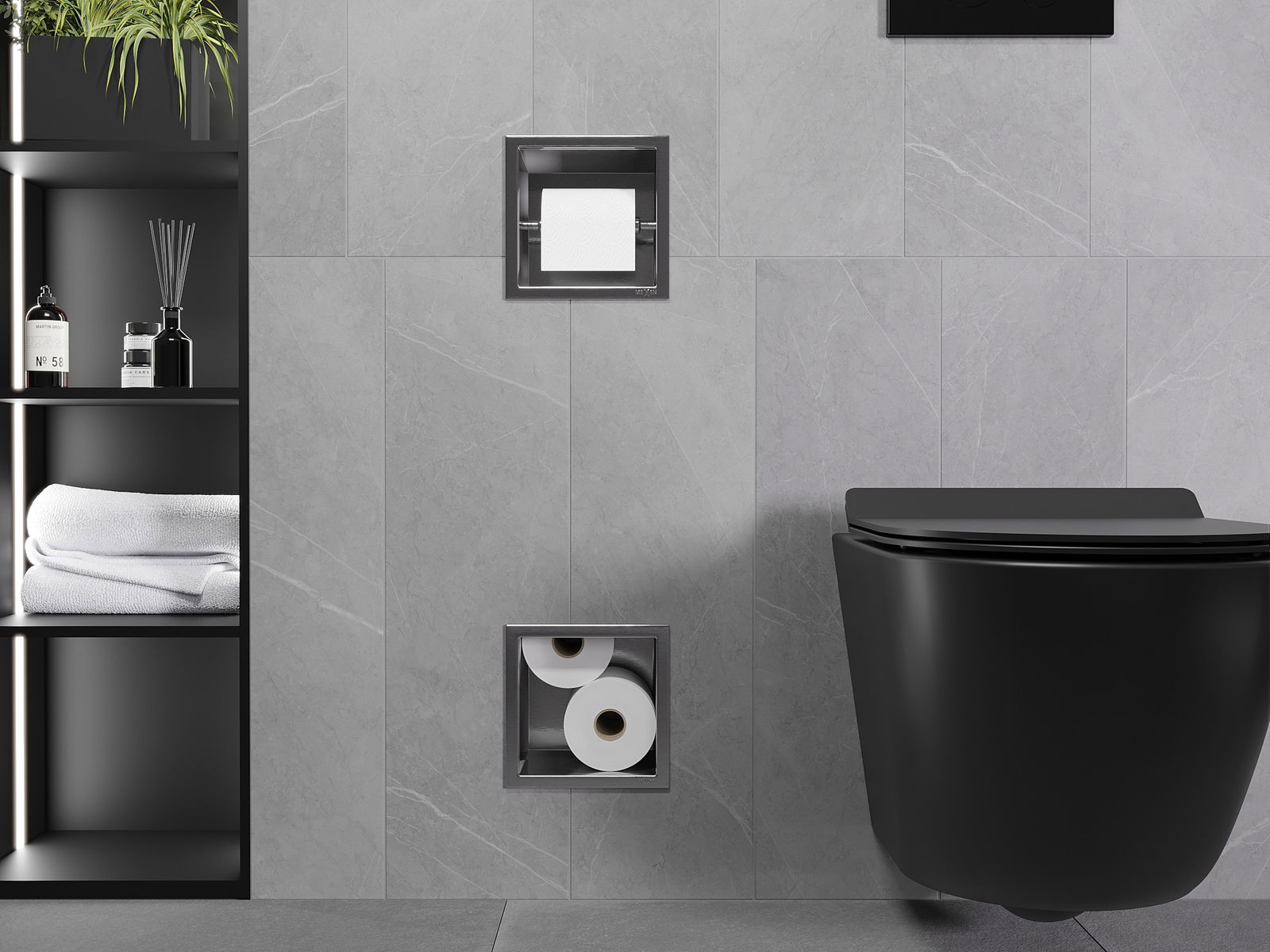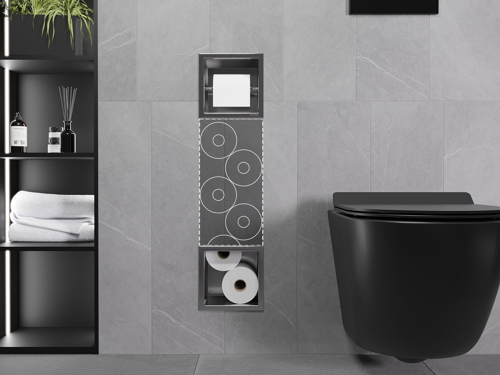 X-wall ist ein praktischer Toilettenpapierhalter mit einem in die Wand eingebauten Magazin. Eine neue Rolle ist immer in Reichweite, und den zuvor für die Aufbewahrung von Toilettenpapier vorgesehenen Platz können wir anderweitig nutzen.