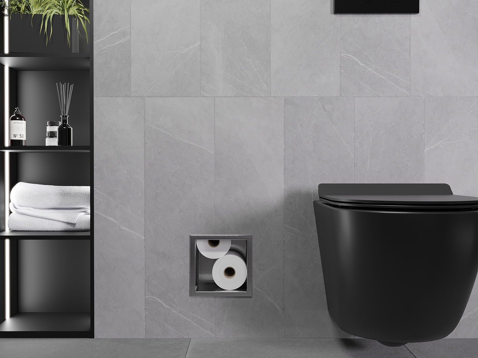 X-wall ist ein praktischer Toilettenpapierhalter mit einem in die Wand eingebauten Magazin. Eine neue Rolle ist immer in Reichweite, und den zuvor für die Aufbewahrung von Toilettenpapier vorgesehenen Platz können wir anderweitig nutzen.