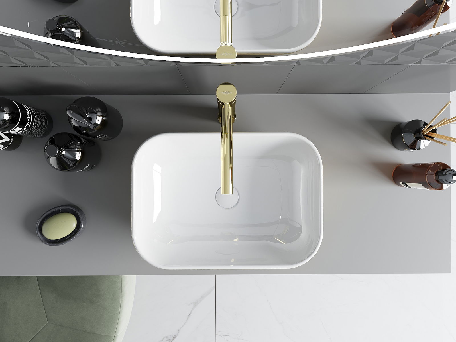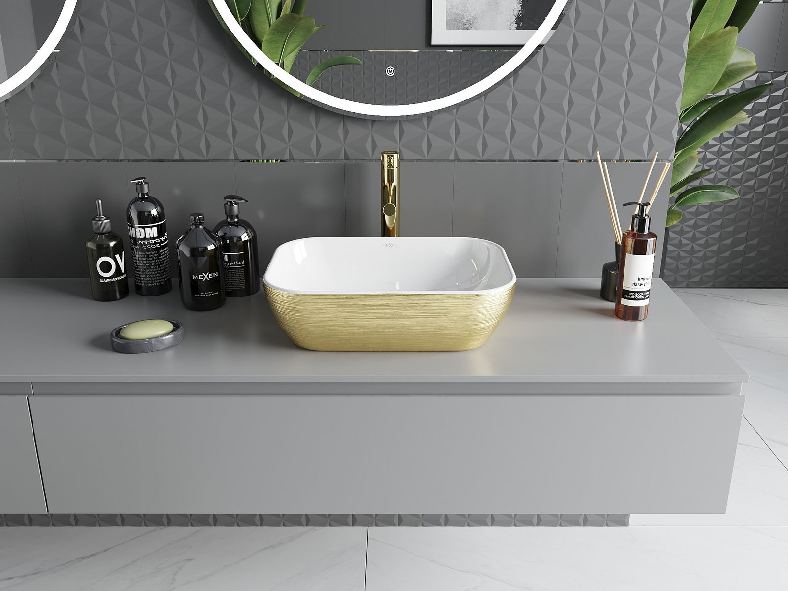 Mexen Rita countertop basin 45 x 32 cm, white/gold lines - 21084553