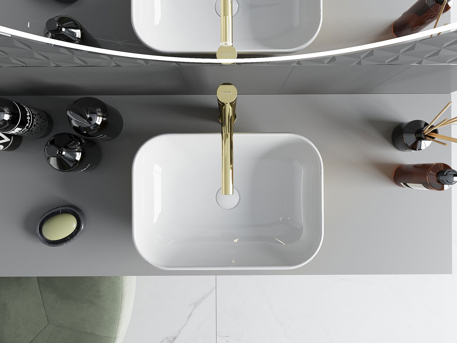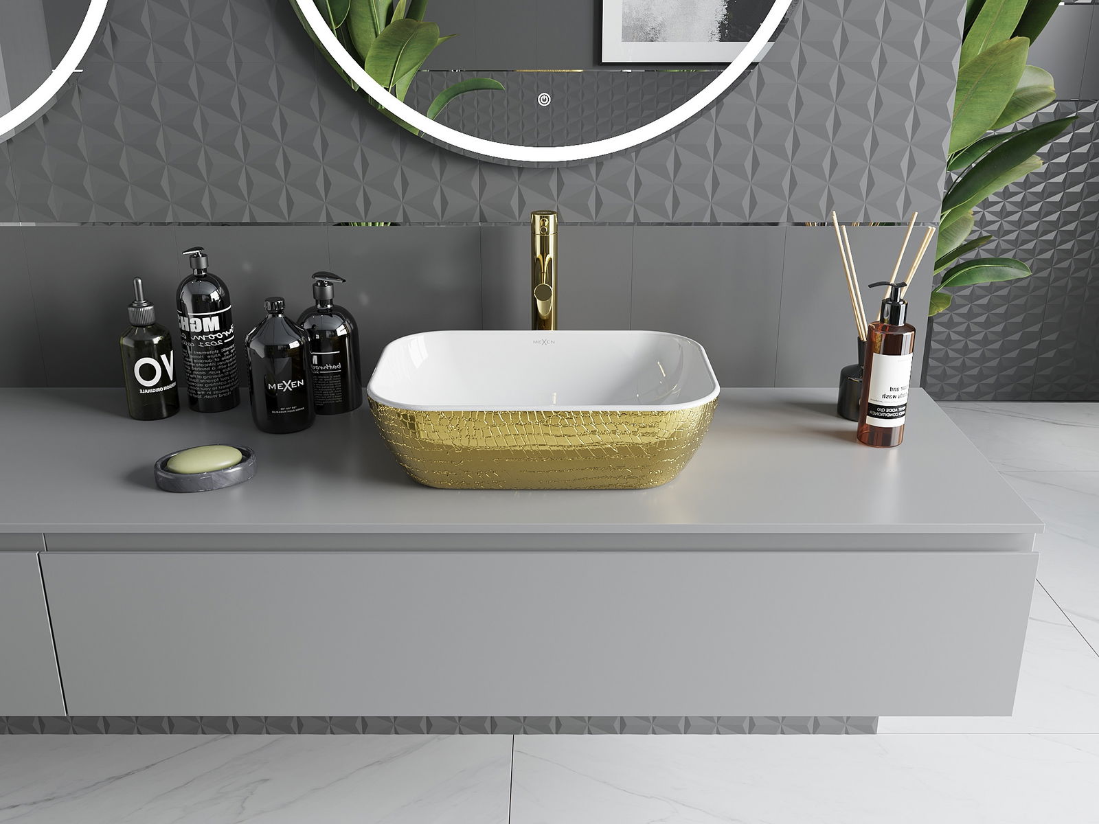 Mexen Rita basin countertop 45 x 32 cm, white/gold scale pattern - 21084554