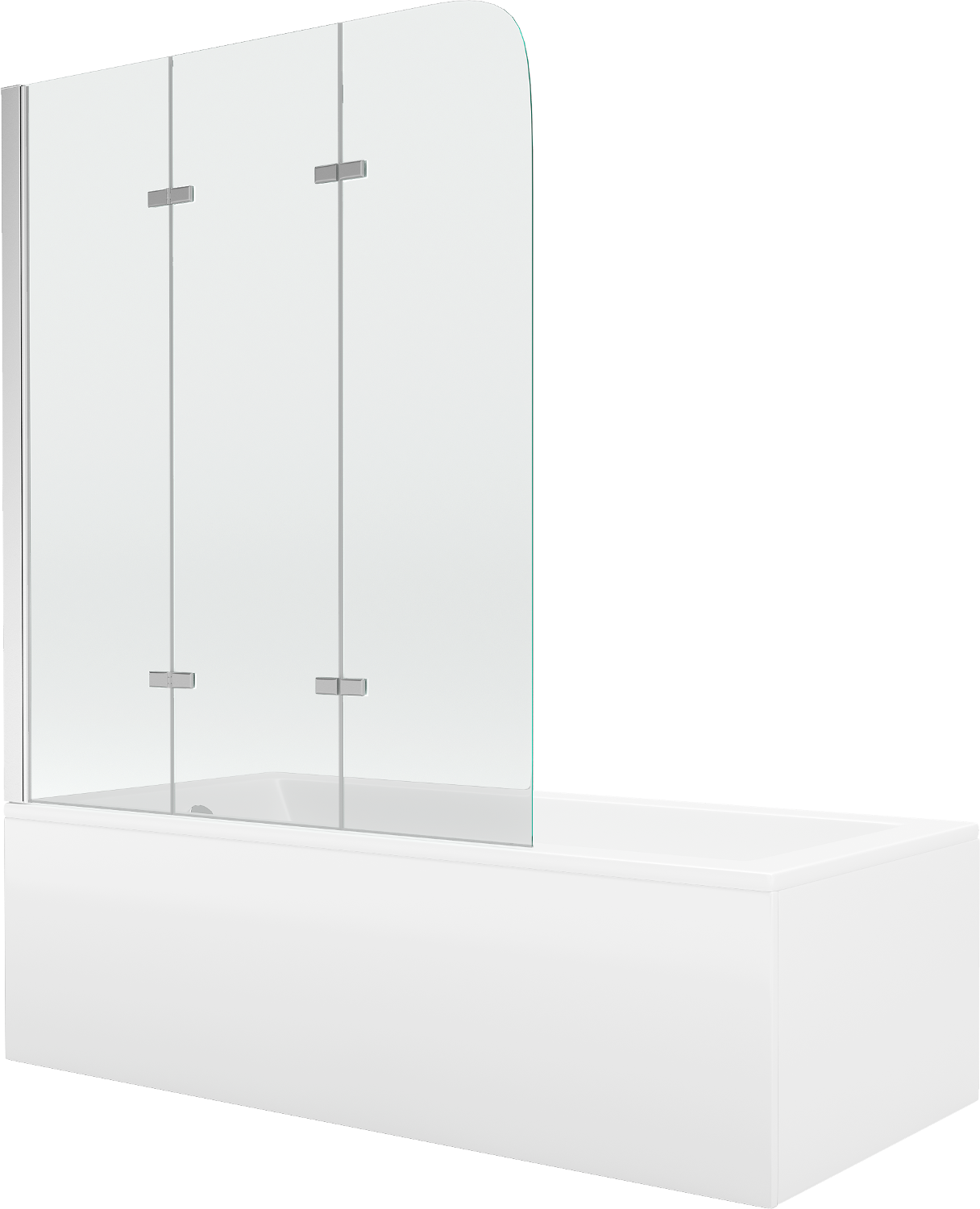 A screen made of three wings with the possibility of folding. This solution saves more space in the bathroom and allows for free use of the remaining space when not using the bathing area.