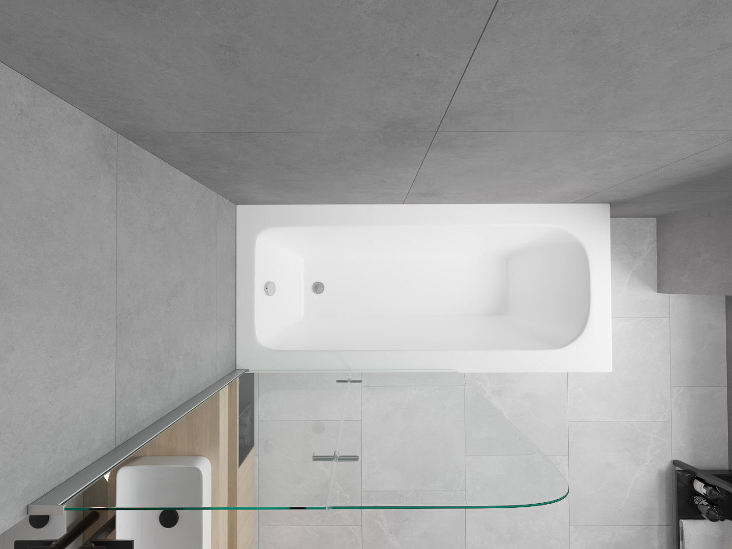 The use of acrylic in the bathroom is a very practical solution. Acrylic retains the water temperature well, preventing it from cooling down quickly. It also has acoustic properties, which helps reduce noise in the bathroom.