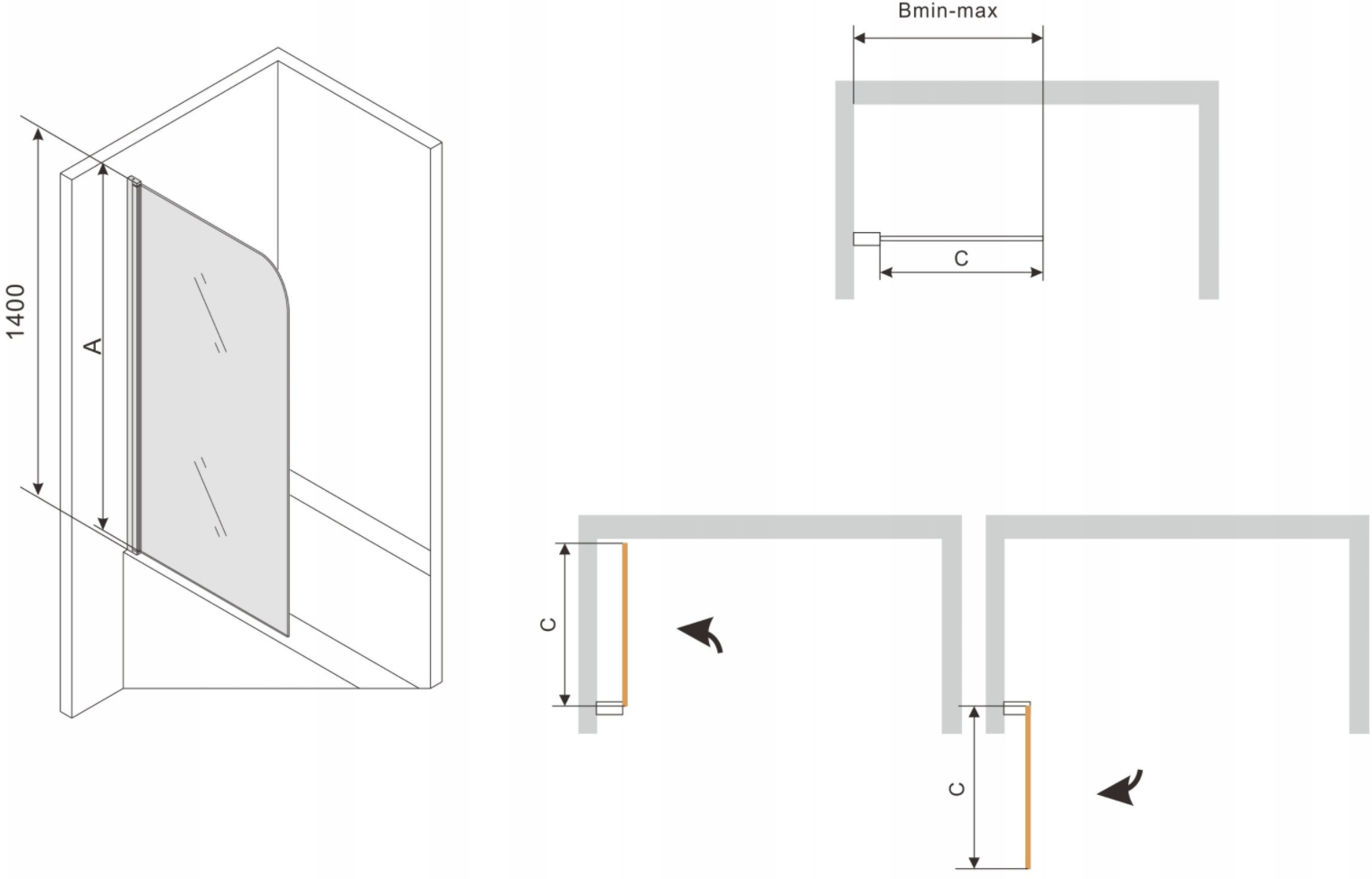 The screen has one movable wing that can be folded. This solution saves more space in the bathroom and allows free use of the remaining space when the bathing area is not in use.