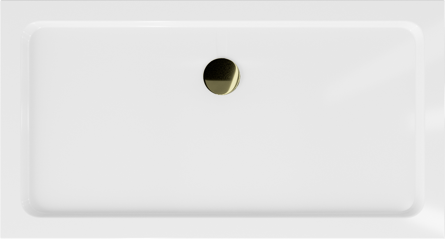 Mexen Flat rectangular slim shower tray 130 x 70 cm, white, gold trap - 40107013G
