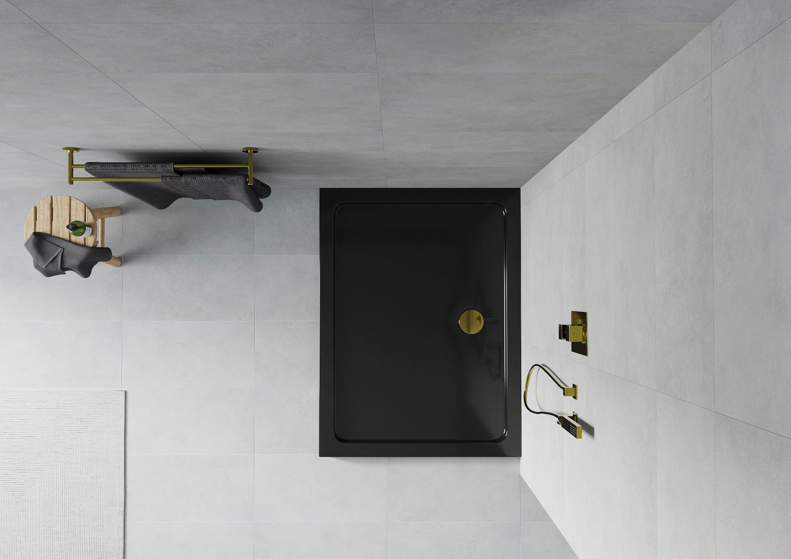 The shower tray is designed in such a way that water can freely flow towards the drain. It ensures quick and effective drainage of water from the surface of the shower tray, preventing the formation of puddles and flooding the bathroom.