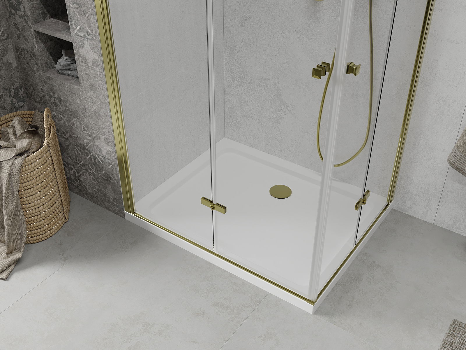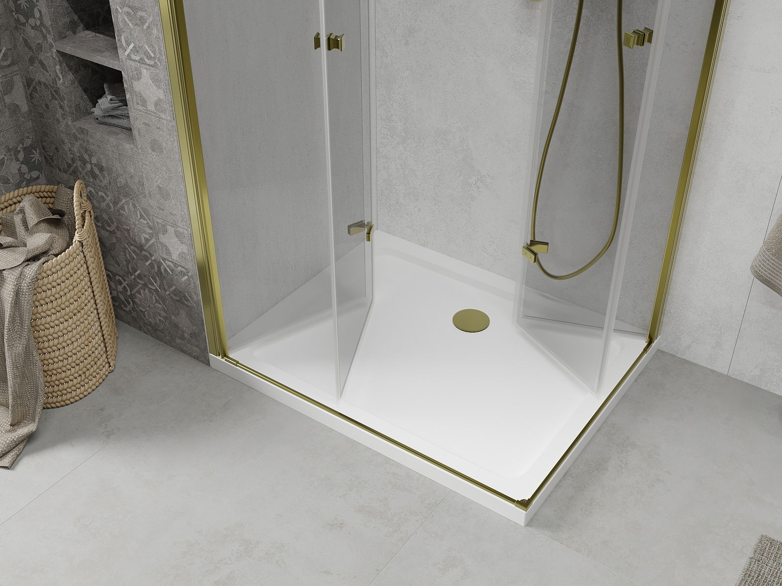 The shower tray is designed in such a way that water can freely flow towards the drain. It ensures quick and effective drainage of water from the surface of the shower tray, preventing the formation of puddles and flooding the bathroom.