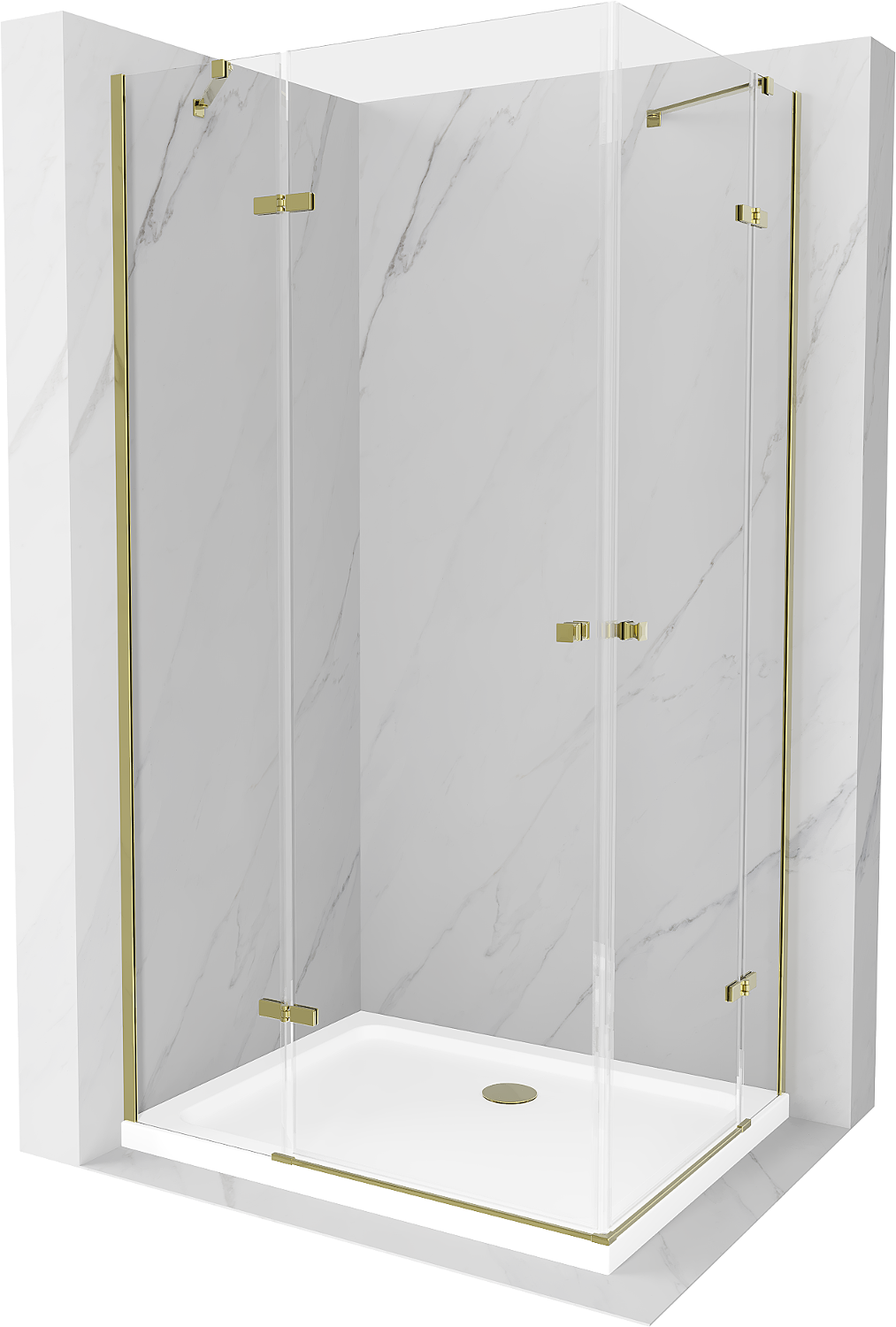 Mexen Roma Duo hinged shower cabin 80 x 70 cm, transparent, gold + Flat shower tray - 854-080-070-50-02-4010G